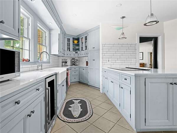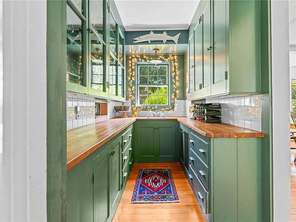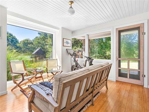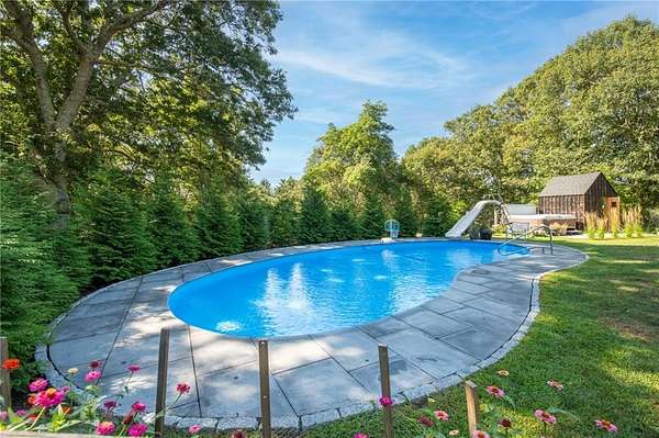 Nestled in Matunuck Hills, the storied estate known as "Wave Hill" is a turn-of-the-century sea captain's home made of stone-and-shingle that radiates timeless charm, privacy, and retreat-like tranquility. Set on 5.5 acres of enchanting grounds, it feels like a hidden sanctuary yet is only minutes from the beach, village life, and coastal attractions. The home offers nearly 3,900 square feet of living space with 6 bedrooms, 4 full and 2 half baths, designed for both large gatherings and quiet moments. A dramatic great room with a massive stone fireplace anchors the home, while the updated chef's kitchen and butler's pantry make entertaining seamless. Sun-filled rooms highlight hardwood floors, stone details, and serene views of Kettle Pond and the surrounding gardens. Wellness and comfort are woven throughout, with a heated saltwater pool, granite spa deck, sauna, vegetable gardens, koi pond, and whimsical pathways that create a fairytale setting. A guest suite with full bath above the garage provides additional living space, while fenced areas, and a goat barn add to the property's unique character, and potential for a small hobby farm. Whether envisioned as a coastal family compound, a creative retreat, or a private sanctuary for entertaining, "Wave Hill" blends old-world elegance with modern comforts, offering a lifestyle of beauty and connection to nature just moments from East Matunuck State Beach, Matunuck Oyster Bar, Wakefield Village, and scenic trails.