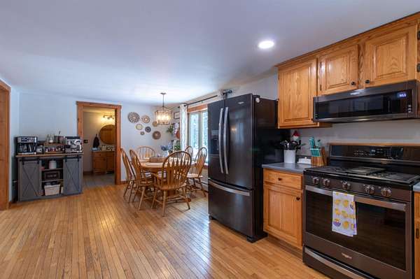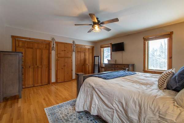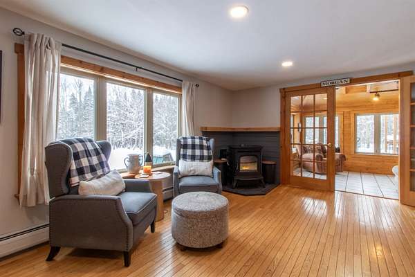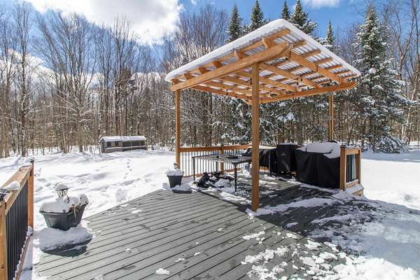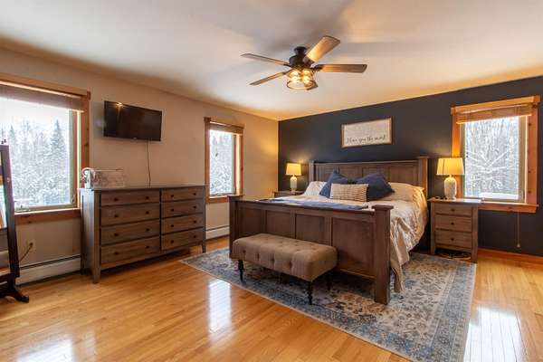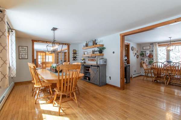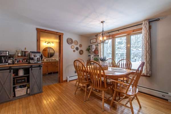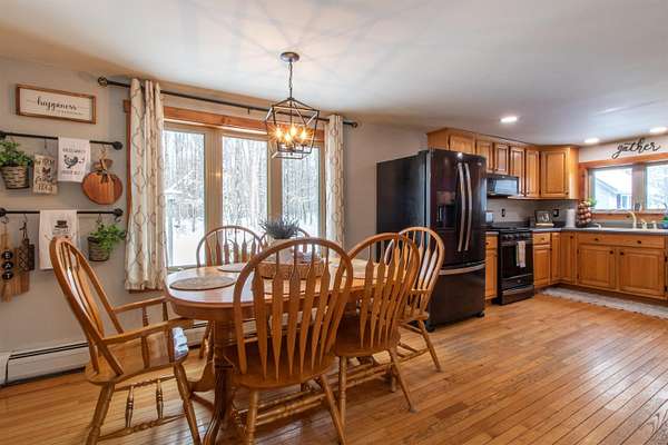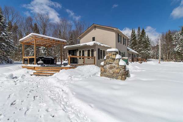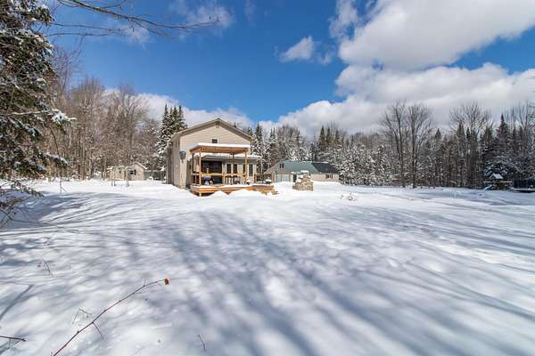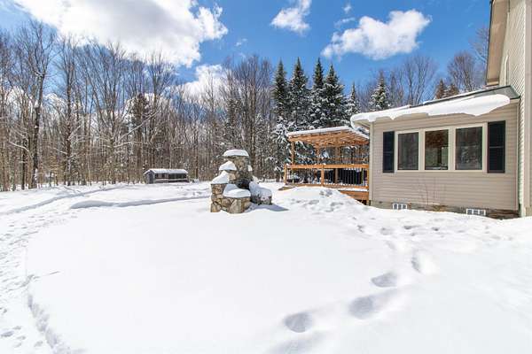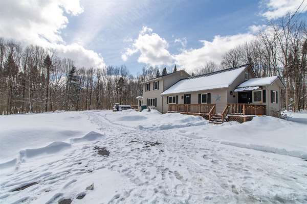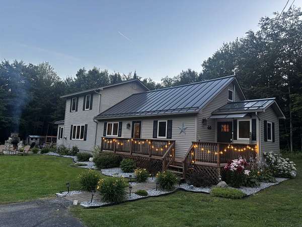 If you’re looking for a property that truly embraces the outdoors, this 10-acre retreat delivers. Abutting 1,400 conserved acres owned by NorthWoods Stewardship Center, you’ll enjoy direct access to an extensive trail network right from established trails on the property offering year-round recreation including hiking, snowshoeing, and wildlife watching. VAST access is nearby for snowmobiling as well. Set well off the road for privacy, the freshly updated home offers flexible living space across three levels. The main floor features a spacious eat-in kitchen, formal dining room, and a large living room with a pellet stove and electric fireplace for added comfort. Sunroom overlooks the yard and newly updated deck. The mudroom is thoughtfully designed with built-in storage, keeping coats, gear, and everyday essentials organized and out of sight. A bath with laundry completes the first floor. Upstairs, the primary bedroom has its own private staircase, creating a tucked-away feel. A full bath can function as part of the suite or be accessed from the hallway. Two additional bedrooms and an office area round out the second floor. Finished lower level expands the living space with a family room, guest space, bathroom, and play or exercise room, plus storage and utility areas, ideal for visitors, hobbies, or working from home. An open 2-acre field that attracts abundant wildlife and offers excellent viewing or hunting opportunities. Apple trees, blueberry and raspberry bushes, and an outdoor fireplace create inviting spaces to gather. The paved driveway leads to a 3–4 car garage with a 10x10 side door for larger equipment or recreational vehicles. The rear section is heated with a wood stove, and there is also a heated, insulated workshop or office. Located between Seymour Lake and Island Pond, you’re minutes from boating, fishing, swimming, local shops, and dining, while still enjoying privacy and direct access to the outdoors.
