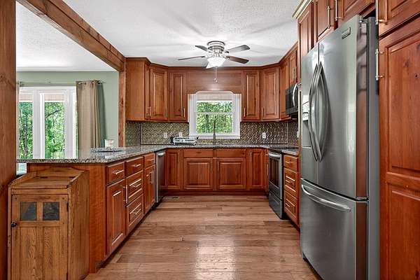 Discover the perfect blend of modern living and serene rural charm with this updated 3-bedroom, 2-bathroom home on 2.07 acres. Boasting 2,234 square feet, it offers ample space for family gatherings and entertaining. The open living area fosters a warm atmosphere, while the new kitchen with stainless steel appliances meets all your culinary needs. Cozy up by the wood-burning insert in the downstairs living area and unwind in the luxurious bathroom with a tiled walk-in shower. Enjoy the large screen porch with stunning countryside views, ideal for summer barbecues or morning coffees. The property includes a two-car garage and an outdoor playset, a chicken coop, and storage building catering to all your needs. Conveniently located near parks, it provides easy access to nature trails, perfect for families and outdoor enthusiasts. Don't miss your chance to own this dream home that seamlessly combines modern amenities with tranquil countryside living. Contact us today to schedule a viewing!