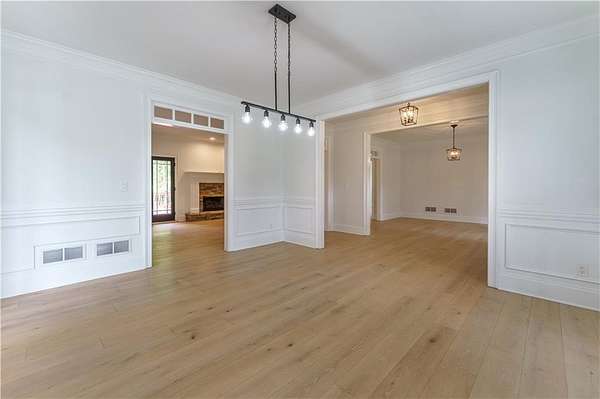 Welcome to this gorgeous home that is immaculately updated and move-in ready. If you want completely move-in ready, this is it! Situated on 1.58 mature and lushly landscaped acres. The huge rocking-chair front porch welcomes you in. To the left & right when you enter are formal living and dining rooms; the seller used the living room as a home office. The fireside great room features built-ins and two sets of doors to the rear patio, letting lots of light flood in. The primary bedroom is on the main level with a dramatic barrel trey ceiling and a sitting area. You will love the fully updated primary bath with gorgeous grey and white marble tile floors and shower and tub surround. New vanity with marble tops and beautiful new mirrors and lighting, a jetted tub, and a huge walk-in tile shower. There is also a large walk-in closet. The kitchen features nearly new kitchen cabinets and marble and butcher block countertops. You will love the new suite of Thermador appliances, including double ovens, a microwave, and a 5-burner cooktop. The laundry room is large & the rear section is additional pantry space. Three huge bedrooms are upstairs with 2 fully remodeled bathrooms with the same high-end tile, cabinetry & light fixtures from below. New modern lighting throughout the house. The roof is less than 1 year old. The basement is very large and there is a huge recreation/multi-purpose room finished. The sellers just added a new HVAC that serves the entire basement so the rest is ready to be finished. There is a huge deck for entertaining outdoors. The sellers fenced a small portion of the backyard for their pets, but there is lots more you could fence on the 1.58 acres. Three-car side entry garage. The refinished hardwood floors in the entire main floor are so beautiful. The paint is fresh. Restoration Hardware fixtures throughout.