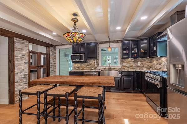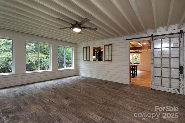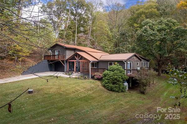 Imagine waking up to the sound of rushing water and stepping into your four-seasons room to watch the morning light dance on the creek. This updated 3 bedroom, 2 bath home sits on 2.55 acres with approximately 1,250 feet of bold creek frontage, including a charming waterfall that you can enjoy right from the house. Inside, every space has been refreshed with modern updates, including a large main-level primary suite, a bright living area, and a kitchen equipped with a new gas range and refrigerator. The design makes it easy to relax, entertain, or simply enjoy the views of nature from nearly every room. Spend your afternoons wandering the land, dipping your feet in the creek, or listening to the water from the comfort of your deck. The property also includes an old barn (do not enter), adding rustic character and possibilities for creative use. Whether you're looking for a full-time home, a weekend getaway, or an investment in the mountains, this property offers the perfect blend of comfort, privacy, and natural beauty.
