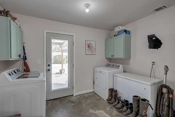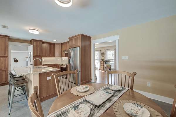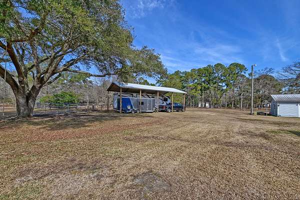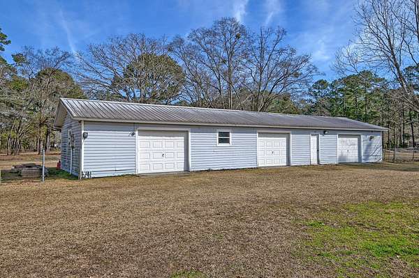 Imagine living just minutes from the shopping, dining, and entertainment of The Marketplace at Carnes Crossroads (1.9 miles), The Market at Cane Bay (3.5 miles), and Nexton Square (5.3), yet coming home each day to your own private 1.8-acre retreat with no HOA, room to roam, and a true sense of freedom.Situated on 1.8 acres, this charming ranch style home combines a great location just one mile from Summerville and an unbeatable outdoor lifestyle. In addition to the ability to house large or small animals, the property features an in-ground saltwater pool, an RV barn with a 50 amp hookup, a massive three bay garage/workshop, and a lovely pond. As you approach the home, you will appreciate the long driveway, the groomed yard, and inviting exterior.Step onto the front porch and enter to find a bright and welcoming living room filled with natural light. Head into the eat in kitchen, where fantastic details shine. The kitchen offers stainless steel appliances, abundant cabinetry, gleaming countertops, a subway tile backsplash, a dedicated coffee bar, an island with seating, and an eat in area with access to the covered porch and fenced pool area. Just off the kitchen is a convenient mudroom and laundry room. Down the hallway, you will find the primary bedroom with an en suite bath featuring a step in shower. Three additional bedrooms, a lovely full bathroom, and a versatile converted garage space complete the interior of the home. The original garage door remains in place, potentially allowing for the possibility of converting it back to a traditional garage. Out back, the huge covered patio and expansive pool deck create an ideal space for entertaining, relaxing, and enjoying the warm Lowcountry climate. This fully fenced area is sure to be a favorite gathering spot. Beyond the pool, the large fenced yard leads to the impressive three bay garage/workshop, a dream setup for hobbyists or anyone needing serious storage and workspace. The RV barn is perfect for housing vehicles, trailers, an RV, or a boat, and a charming pond adds to the peaceful setting. Per Berkeley County zoning, the property allows up to two large animals such as horses or cows, or up to five smaller animals.* The location is equally appealing, with Berkeley Hospital just a mile and a half away, I-26 only 5.5 miles away, and Historic Downtown Summerville just 7.8 miles away. With so much to offer, this is a property you will not want to miss. *Berkeley Co Planning and Zoning to confirm information regarding allowable animals. *Ask about the possibility of receiving 1% reduction in interest rate and free refi.*