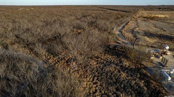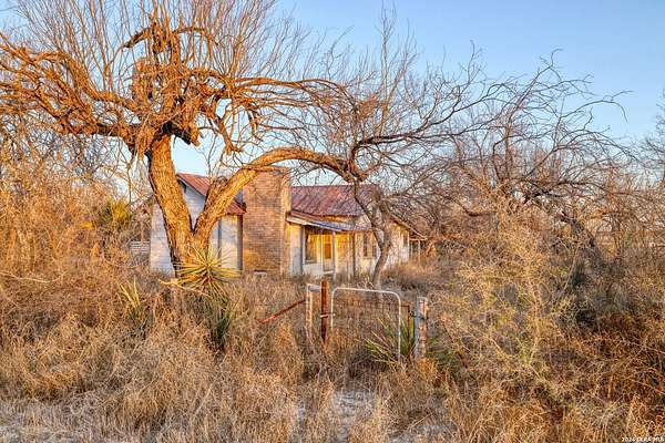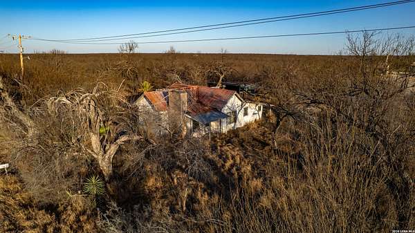 Situated just outside the city limits, this 6.5-acre property offers space, privacy, and flexibility with the benefit of a lower tax base. Located only minutes from town and approximately 100 yards off Highway 83, the setting provides easy access while still delivering a peaceful, country feel. The property features a 2-bedroom, 1-bath home with just over 1,000 square feet, originally built around 1930. Nearly a century old, the home showcases authentic rustic farmhouse charm, including a brick fireplace, covered front porch, and metal roof. The structure has been vacant for an extended period and is ready for a new owner to decide its future-restore and renovate, or start fresh with a new build. The land itself is a standout, dotted with mature mesquite trees and native South Texas brush. Interior roads wind through the acreage, and there are visible signs of wildlife throughout the property, making it appealing for those who enjoy the outdoors. Utilities are already in place. The existing well and septic systems have not been used in many years, and their current condition is unknown. With multiple potential uses-renovation project, new construction, manufactured home placement, or possible commercial use due to proximity to Highway 83-this property offers versatility and value. Priced affordably with a focus on land, location, and existing infrastructure, this is a rare opportunity to own acreage with endless possibilities in Carrizo Springs.