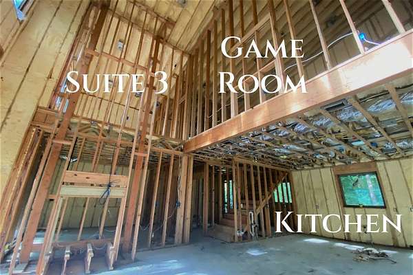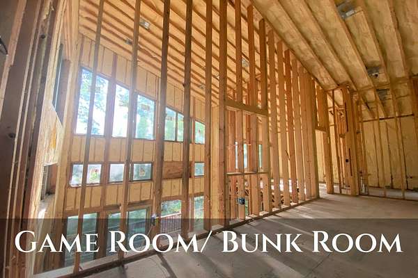 As-Is, this partially built cabin is planned at ~2,933 SF heated with 4 private bedroom suites, 5.5 baths, a large game-room loft, and a dramatic two-story living room with a wall of windows (buyer to verify). ~1,027 SF of decks/outdoor living extends your gathering space for dining, hot tubbing, and fireside evenings under the pines (buyer to verify). Quiet setting, minutes to Hochatown dining, Beavers Bend, and the lake. Quick-Scan Highlights As-Is shell on ~1.73 acres with creek | cul-de-sac Plan: ~2,933 SF heated + ~1,027 SF decks/outdoor (buyer to verify) Layout: 4 en-suite bedrooms | 5.5 baths | large game-room loft Showpiece: two-story wall of windows in great room STR-friendly design: suite privacy + group flow Located in desirable Eagle Mountain Phase 4 Notes: Property conveys as-is/where-is at current stage; see photos/plans. Buyer to verify square footage, utilities, septic, permits, and remaining scope to complete.