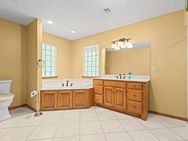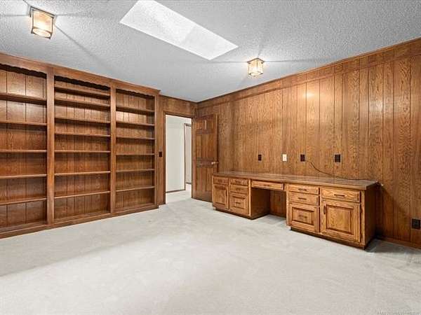 Located less than 10 minutes from downtown Bartlesville and built by Terrel Taylor, this beautiful and spacious home is tucked away in the privacy of mature trees, on 4.2 +/- acres! The tree-lined driveway leads you to ample parking, an oversized 2-car garage with an attached shop, which includes an air compressor and wall furnace. Step inside to a spacious foyer with not one, but two walk-in coat closets! Step into the living room and you will find a fireplace with remote-controlled gas logs, flanked by two tall windows, a wall of windows with remote control blinds, and a home entertainment/speaker system. The primary ensuite features two walk-in closets, two vanities, a jetted tub, a separate shower and abundant storage. The very spacious hobby room includes a separate entrance, a closet, and half bath and could be used as a 4th bedroom. The library features two walls of built in shelves, a skylight, and so many possibilities such as office, den, or guest room. All of the bedroom and hall closets are walk-in! So much storage! The very large kitchen includes a spacious island, a new Bosch dishwasher, a hands-free faucet, a walk-in pantry across the hall and more storage than you can imagine!