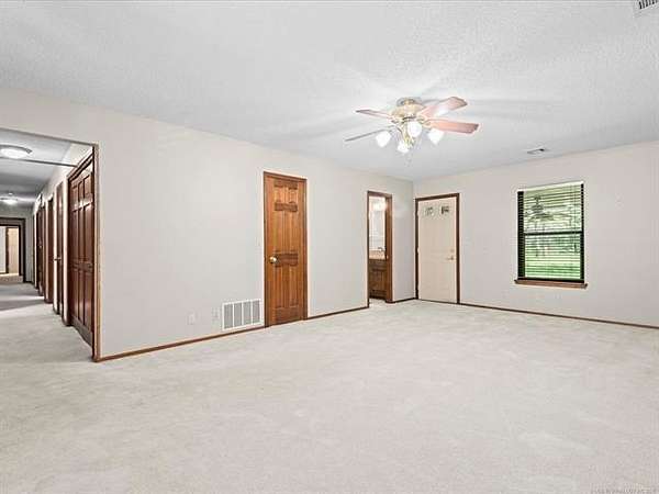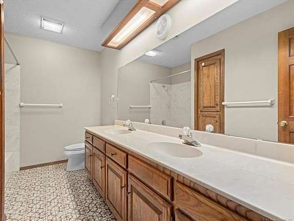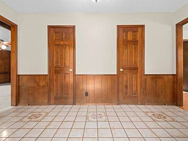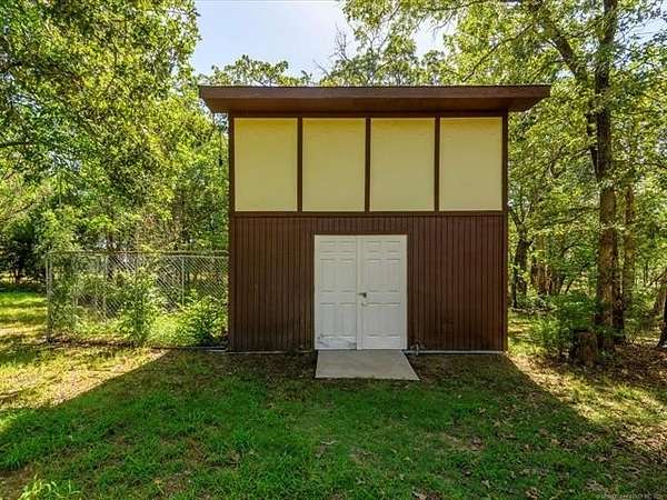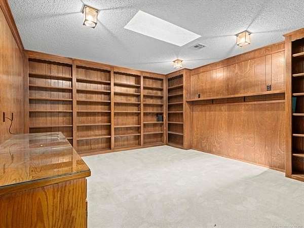 Located less than 10 minutes from downtown Bartlesville and built by Terrel Taylor, this beautiful and spacious home is tucked away in the privacy of mature trees, on 4.2 +/- acres! The tree-lined driveway leads you to ample parking, an oversized 2-car garage with an attached shop, which includes an air compressor and wall furnace. Step inside to a spacious foyer with not one, but two walk-in coat closets! Step into the living room and you will find a fireplace with remote-controlled gas logs, flanked by two tall windows, a wall of windows with remote control blinds, and a home entertainment/speaker system. The primary ensuite features two walk-in closets, two vanities, a jetted tub, a separate shower and abundant storage. The very spacious hobby room includes a separate entrance, a closet, and half bath and could be used as a 4th bedroom. The library features two walls of built in shelves, a skylight, and so many possibilities such as office, den, or guest room. All of the bedroom and hall closets are walk-in! So much storage! The very large kitchen includes a spacious island, a new Bosch dishwasher, a hands-free faucet, a walk-in pantry across the hall and more storage than you can imagine! In close proximity is the formal dining room with beautiful views of the woods. You will enjoy the tranquility of being in nature and calling this spacious and cozy dwelling home! Sellers are giving the buyers a $5,000 decorating allowance. New HVAC installed 9/18/25!