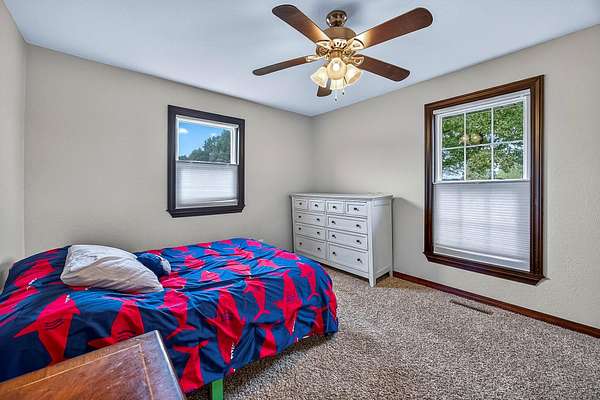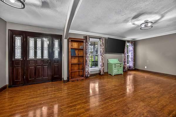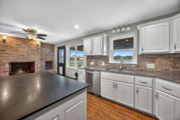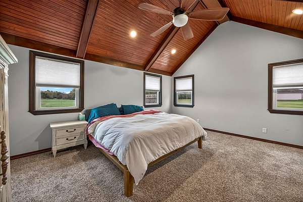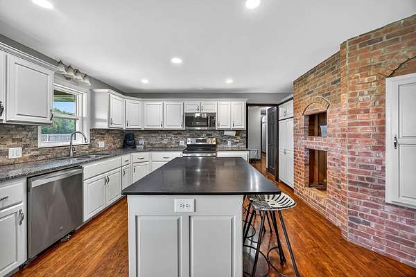 Don't miss the opportunity to see this 5,000 sq. ft. home on 7.4 acres in Clever School District. Just outside of city limits, this property provides country living just minutes from schools, shopping and dining.Newly remodeled and ready for a new owner! This spacious home offers 3 living areas including a formal living room, formal dining room, family room with fireplace and huge entertainment and recreation room upstairs, 5 bedrooms and 4 baths featuring custom tile showers. Large eat in kitchen with island and fireplace. A brick pizza oven is ready for wiring and new equipment. Three bedrooms offer ensuites, perfect for in-law quarters. Home also features a large mudroom with separate entrance, ready for washer and dryer. This 7.4 acre property is perfect for horses or a hobby farm with level acreage and large barn. Large covered patio overlooks acreage.Solar panels do not stay and will not be sold with the home.