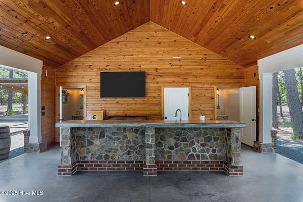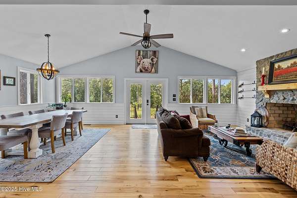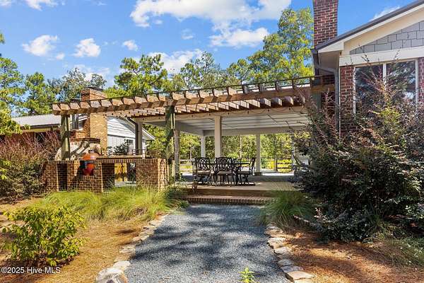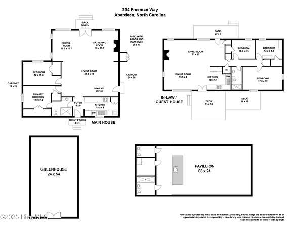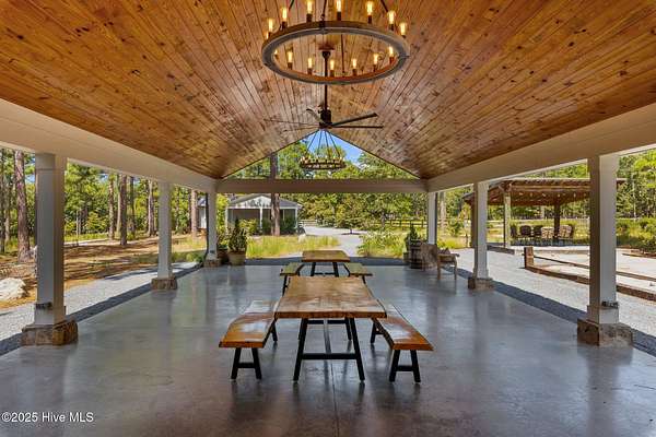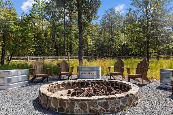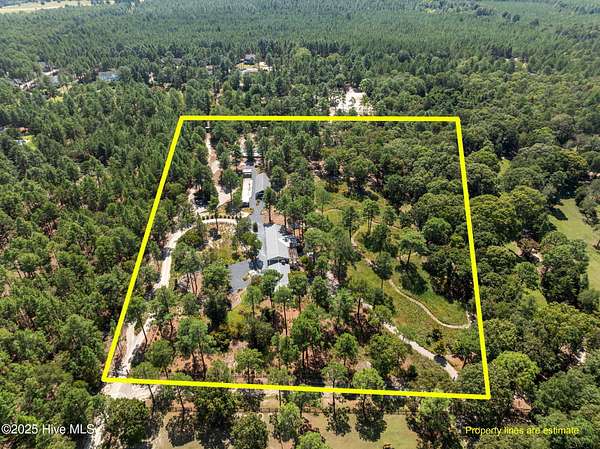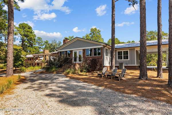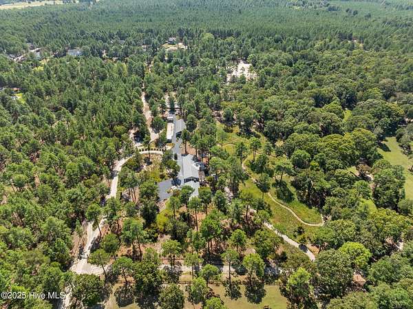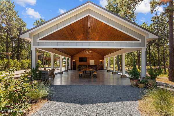 A RARE TWO-HOME ESTATE DESIGNED FOR LIVING, ENTERTAINING & EVENTS. Enjoy outdoor entertaining at its finest. This is a property like no other. Host large holiday gatherings for multigenerational families or corporate entertaining. Set on 8 acres this farm is a hidden gem off Linden Rd only 2 miles from the Village of Pinehurst. Perfect Pinehurst ''getaway'' or year round residence. THERE ARE TWO SEPARATE HOMES ON THE PROPERTY. Perfect configuration for separate ''mother-in-law'' cottage. In addition, features include a beautiful outdoor pavilion and a magnificent glass greenhouse along with NC native gardens and wildflower patches. The glass ''greenhouse'' makes a perfect venue for large group dining under the stars. Think about how lovely an intimate event would be in this gorgeous glass structure! The primary residence was completely remodeled in 2018 and features 3 bedrooms and 1 bath; the guest house built in 2019 features 2 bedrooms and 1 bath. Both houses are open concept and have hickory hardwood floors throughout with wood burning fireplaces. The outdoor kitchen has an intimate dining area featuring a wood burning pizza oven. Built in 2021 the expansive pavilion is perfect for hosting large gatherings under the shelter of its open-air structure. Amenities include a custom-built concrete/stone bar center and 2 bathrooms. This beautifully custom-built structure offers the ability to create distinctive events such as receptions/weddings or corporate retreats. Constructed in 2023 the exquisitely designed glass greenhouse in addition to a dining venue is also perfect for horticulture use. This farm location is perfect for a future owner who is looking for privacy by creating their own space to entertain or host events.