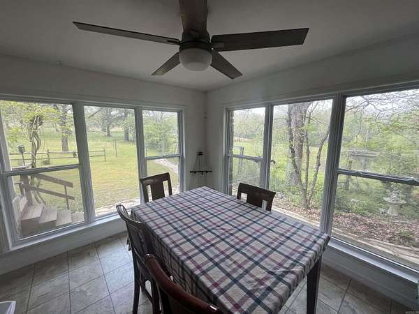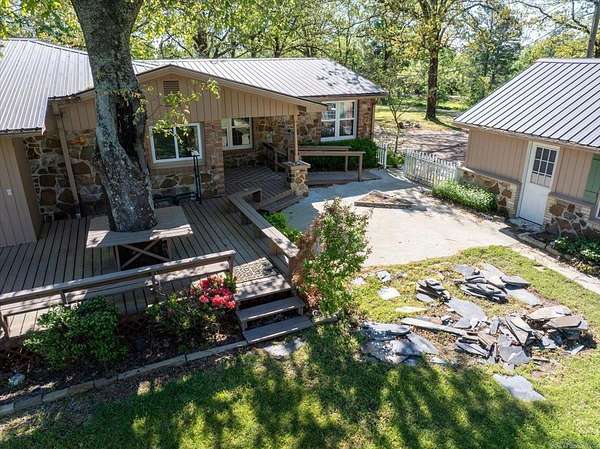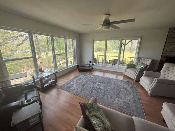 Situated just minutes from town, this incredible property truly has it all! The home has 4 bedrooms, and 3 bathrooms making it spacious and functional for those seeking larger living quarters. The kitchen has attractive hardwood cabinetry and overlooks the living room where you can entertain as your family or friends cozy up by the attractive electric fireplace. Large windows throughout the living space allow for ample natural light, and there is extensive built in storage too! Other features include an infrared SAUNA, electric toilets in each bathroom, high countertops for added accessibility, a lovely back deck and a wood fireplace in one bedroom! Step outside and you are greeted with an expansive 5 acre stocked LAKE, beautiful established landscaping and trees, and even a second smaller stocked pond! Multiple out buildings including a spacious lofted guest house, a large shop, and an even a separate woodworking shop! There is also a lovely greenhouse complete with planting tables, AND a tiny house! With easy access to Wolf Pen Gap ATV trail system and multiple build sites throughout the 35 acres and around the LAKE, this would be an ideal location to build rental cabins!