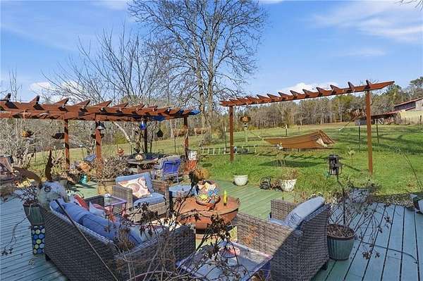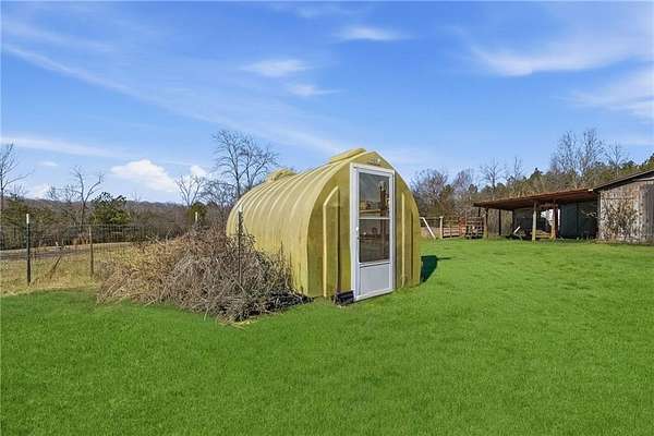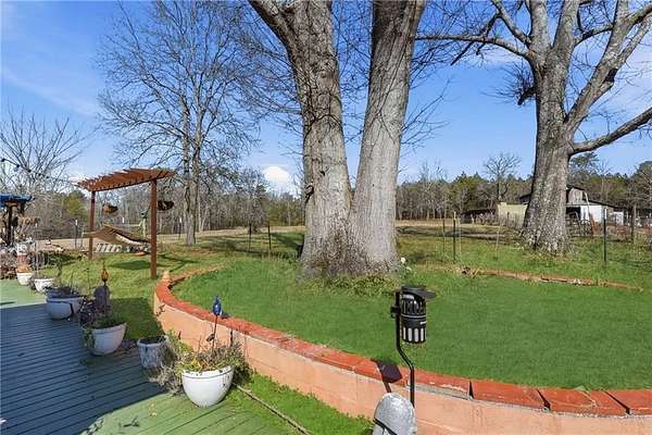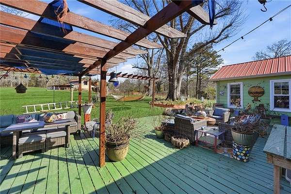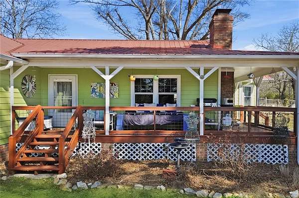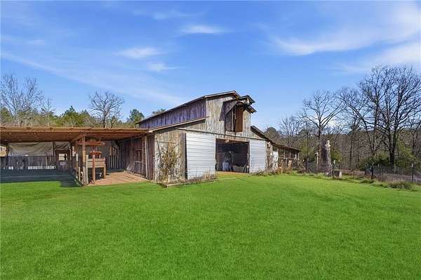 12.5-Acre Turnkey Hobby Farm Estate with Barn, Solar Gem Greenhouse, Pool & Dual Road Frontage. Discover the perfect blend of country living and modern convenience on this fully equipped 12.5-acre hobby farm in peaceful Rockmart. With a beautifully updated ranch home, well-designed farm infrastructure, and equipment included, this property is ready for gardening, animals, recreation, or simply enjoying the privacy and open space of rural living. The updated 3-bedroom, 2-bath ranch offers comfortable one-level living and is discreetly ADA-accessible with no visible ramp. Inside, the home features updated flooring, a fireplace, freshly painted interiors, spacious bedrooms, and a functional mudroom with built-in bench seating. The updated kitchen includes a brand-new stove and provides a welcoming space for everyday living and entertaining. Outdoor living areas include an expansive deck with lighting, an updated front porch, and an above-ground pool with a new liner, creating inviting spaces to relax and enjoy the surrounding landscape. The acreage features mature landscaping, fruit trees, blueberry bushes, and established garden areas, along with a productive hoop garden and honeybee colonies that support a thriving growing environment. A Solar Gem greenhouse provides excellent space for starting plants and extending the growing season, and a ComposTumbler is included for convenient composting. The 4-stall barn with hayloft is thoughtfully designed with integrated poultry space and includes a wash bay, tack room, and a wide 15-foot alleyway, plus an outdoor shower for farm chores or post-ride cleanup. Additional infrastructure includes well water with a city water tap available, RV hookup, and dual road frontage including cul-de-sac access with utilities, providing flexibility and long-term potential for the property. Open acreage offers space for horses, livestock, gardening, recreation, or small-scale farming. Major updates include HVAC replaced winter 2025, new windows installed fall 2025, electrical panel updated 2024, metal roof installed in 2001 with fasteners and washers replaced in 2021, and a cement driveway recently repaired in 2026. Included in the sale is a Kubota tractor, bush hog, zero-turn mower, 2001 F-250 Power Stroke truck, and heavy-duty equipment trailer, making this a truly move-in-ready farm property with infrastructure already in place. Enjoy peaceful country living with the space, infrastructure, and flexibility to garden, raise animals, or simply relax and enjoy the land!