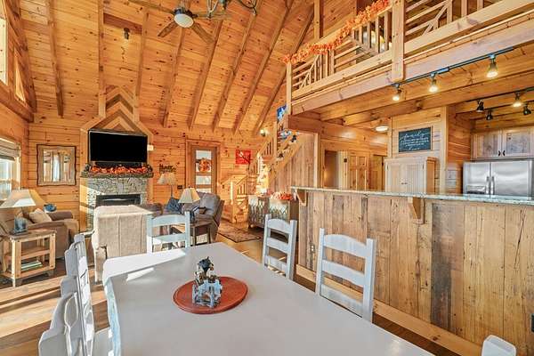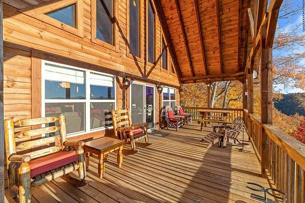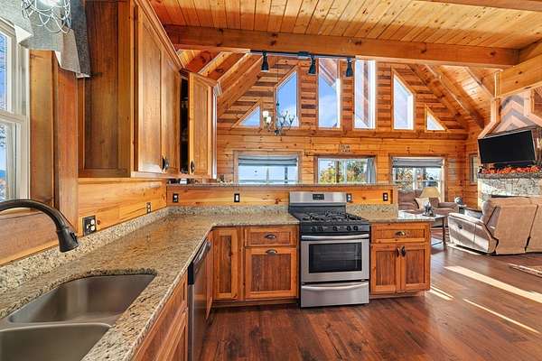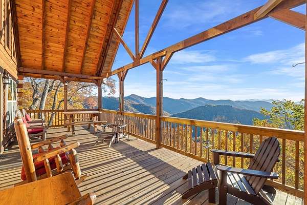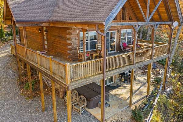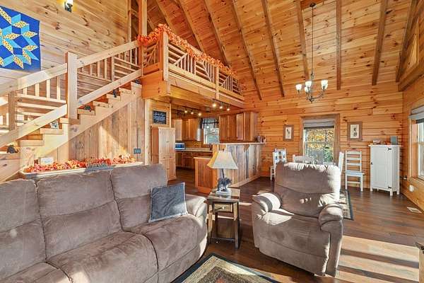 Rustic Elegance in Alarka Highlands - Smoky Mountain Views! Nestled high above Bryson City in the prestigious community of Alarka Highlands, this 3-bedroom, 3-bathroom log cabin offers the perfect blend of timeless charm and modern comfort. From the moment you arrive, you'll be captivated by sweeping long-range views of the Great Smoky Mountain National Park, visible from the expansive deck and nearly every room in the home. Crafted with true log construction and warm wood interiors, the cabin features an open-concept living area with a soaring cathedral ceiling, stone fireplace, and generous natural light. The spacious kitchen is ideal for entertaining, with modern appliances and plenty of counter space. The home includes a bonus room perfect for an office, or extra sleeping quarters. Designed for year-round comfort and peace of mind, the property is wired for a generator, ensuring uninterrupted enjoyment no matter the season. Whether you're searching for a full-time home, a vacation getaway, or an investment property, this mountain log cabin in Alarka Highlands is a rare find. Fully Furnished, Turnkey.