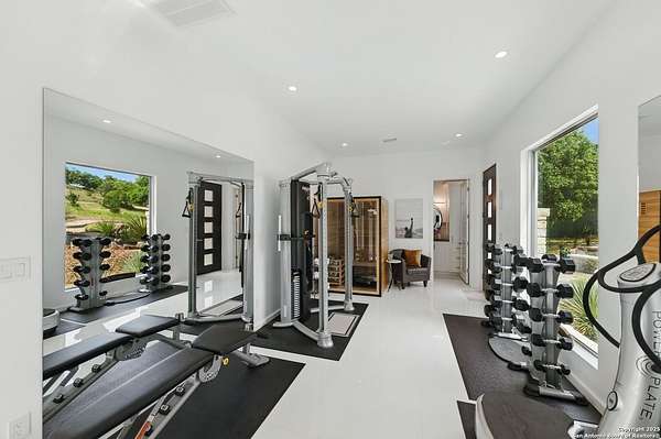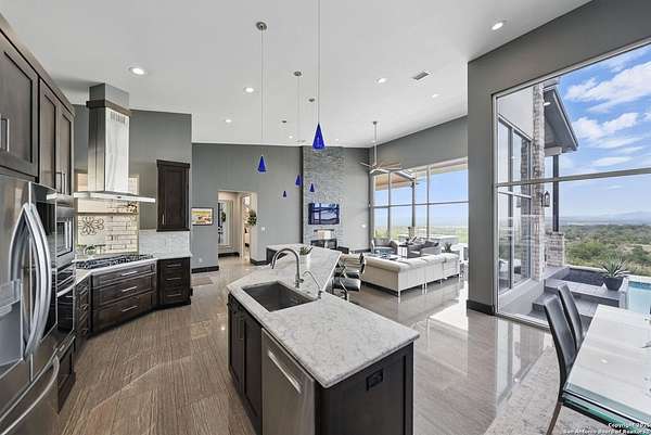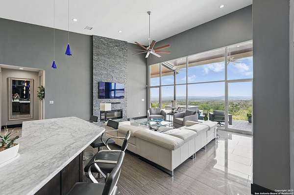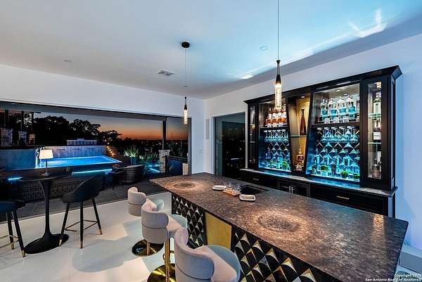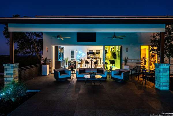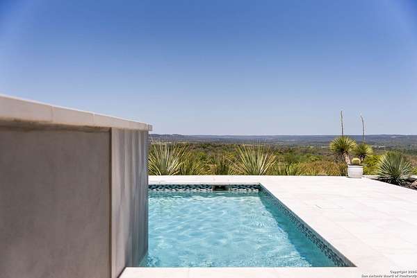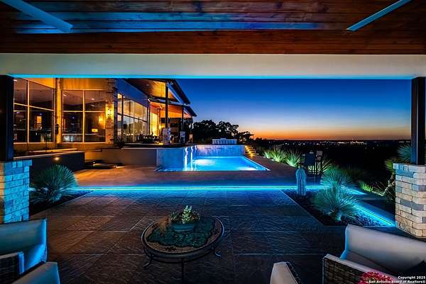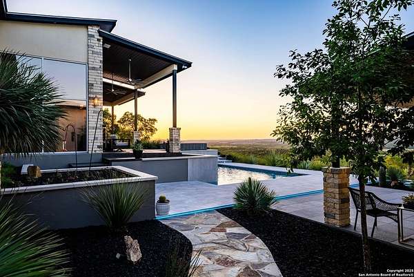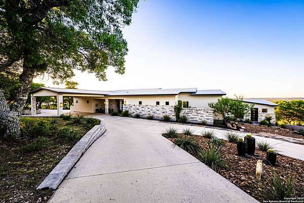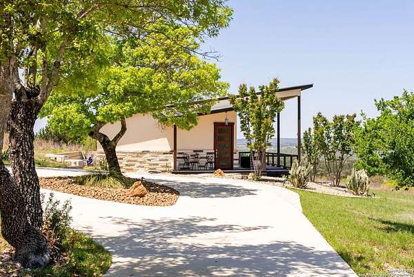 Experience unparalleled luxury in the heart of the Texas Hill Country with this exceptional modern ranchette estate, a true sanctuary that seamlessly blends nature's grandeur with refined elegance. Spanning over 12 private acres, this one-of-a-kind residence is perfectly situated just outside San Antonio in the charming town of Comfort, Texas. Nestled on the tranquil hillside at the rear of a gated estate, it offers unparalleled seclusion while still providing convenient access to city amenities and the San Antonio International Airport, making it ideal for both relaxation and effortless travel. Step inside to discover an expansive sanctuary where floor-to-ceiling windows frame breathtaking panoramic views of rolling hills and endless natural beauty, inviting the outdoors in. The thoughtfully curated interior merges natural stone accents with sophisticated textures, cultivating a warm yet modern ambiance throughout. Architectural mastery is evident in sleek, seamless lines that harmonize with the landscape, creating a perfect synergy between indoor and outdoor living. Floor plans designed for effortless entertaining boast spacious areas that open onto the sprawling outdoor terraces, where you can unwind by your luxurious pool or gather at the stylish Car Bar cabana-a vibrant setting for hosting friends and family. Imagine waking each day immersed in awe-inspiring vistas, with the rising sun casting a golden glow over your private paradise. From dawn to dusk, each moment offers a new perspective-an evolving masterpiece of natural beauty and refined comfort. For your guests, a private guesthouse provides an equally indulgent experience, ensuring everyone enjoys their stay in comfort and style. This estate is more than just a home-it's a lifestyle of exclusive luxury, serenity, and effortless elegance. Discover your new sanctuary in Comfort, where exceptional living begins and every moment is touched by beauty. Welcome to your Hill Country retreat-where nature and luxury unite in perfect harmony.