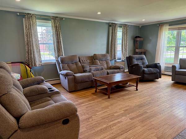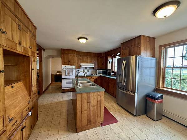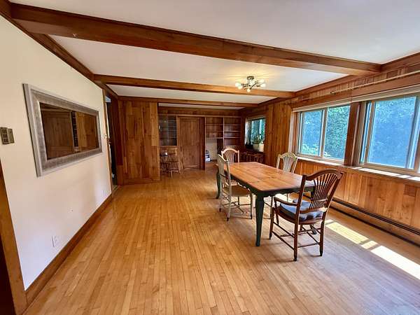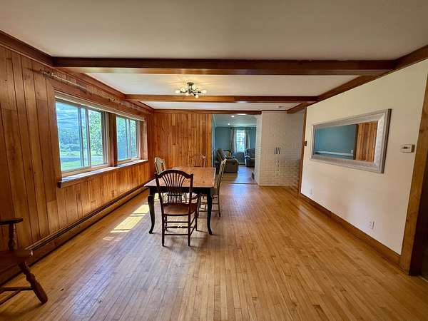 There are so many things to feature about this unique property, you will need to come see for yourself- we can't possibly mention it all here. Where else will you find 5 acres in the Village of Potsdam? This old farmhouse has been renovated over the years and has 6 bedrooms and 2.5 baths. Sitting on the 5 acres is an old cow barn with a chicken coop, silo and milk house, another large pole barn that could be used for anything, an inground pool with a pool house that has the pump room and kitchenette with running water and space to relax our of the sun and prepare snacks or change out of wet bathing suits. There are several mature apple trees that the deer like to visit. When you enter the home by the garage, you are greeted with a mudroom that extends to butler's pantry with loads of cabinets and counter space. The kitchen has a good work flow and there is a small half bath. Entering the formal dining room, there are beautiful built ins and an area to put in a wine fridge and the original hardwood floors flow throughout the main level. Off the back of the dining room is another small room that would be ideal for more storage, a pantry, an office, craft room or even a small guest room. The living room is bright and spacious with the fireplace as its focal point. Up the staircase are 5 bedrooms and a bathroom. The new laundry room is also located down the hall before stepping down into the primary suite. There are French doors giving such a beautiful view of the backyard and pool area. All you need to do is add an upper deck to enjoy the outdoors from your bedroom. The bathroom is stunning, with a wall of windows, a jetted tub and a gorgeous shower. This area is open to the closet with built in storage and shelving. This feels like a retreat in your own home. Take a tour today and finish the vision the previous owners had!