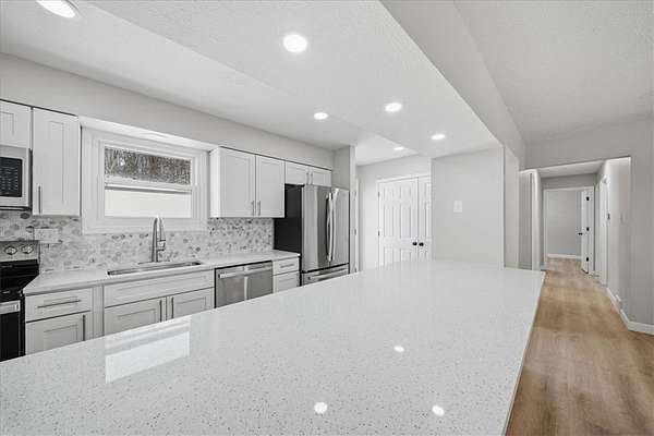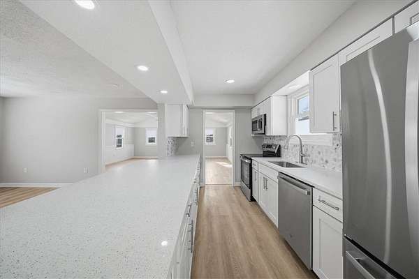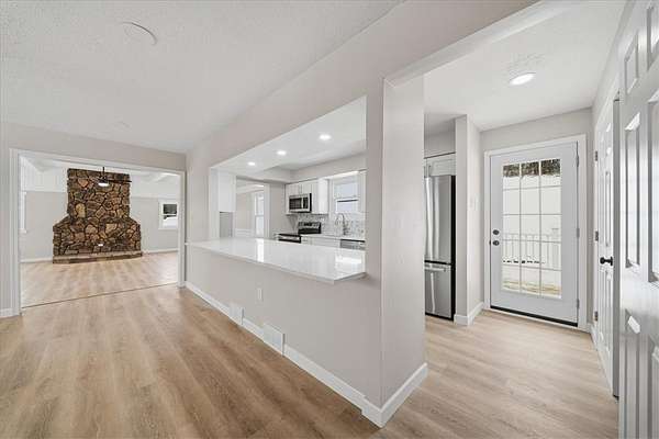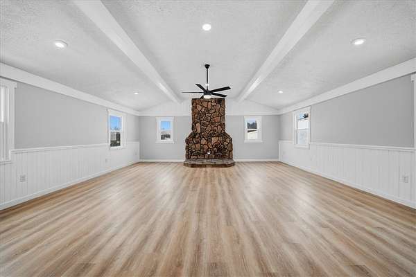 Christmas came early with this completely renovated countryside home on nearly 3 acres! Step inside to a warm, open floor plan featuring a spacious dining room with a pass-through window to the kitchen--great for entertaining. The huge living room offers a stone mantle perfect for hanging stockings and plenty of natural light for your Christmas tree.