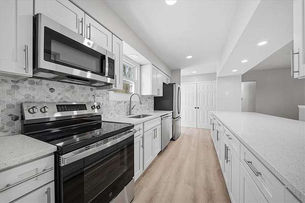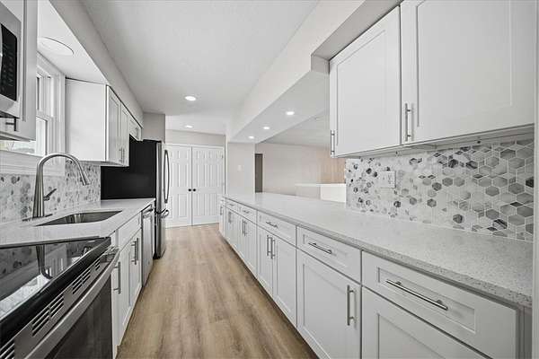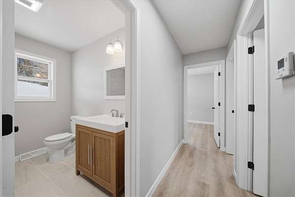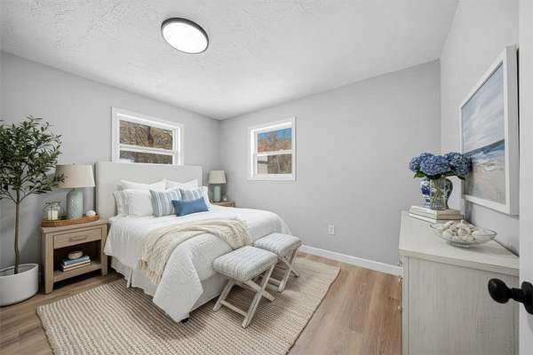 The pristine galley kitchen offers granite countertops, stainless steel appliances, and generous counter space that opens to the dining area--plenty of room for baking holiday cookies or hosting festive gatherings. The main level includes three large bedrooms and a full bathroom, all thoughtfully updated for modern comfort.