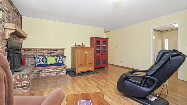 Inside, the open-concept kitchen and living area creates a warm, welcoming atmosphere ideal for gathering with friends and family. A cozy fireplace brings charm and comfort on cool evenings, and windows pull in natural light and views of the surrounding woods. The full basement is partially finished, offering additional living space, hobby areas, or storage with the opportunity to customize to your needs.