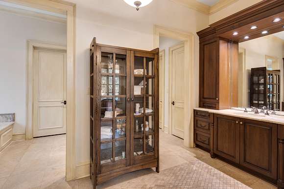 Palatial custom built country estate designed by John Millard in the gated quiet & secluded Mountain Brook enclave of Mary's Creek Farms. So close yet so far away.... just a short drive in the picturesque countryside from Germantown and Collierville. Situated on a lake front 8 acre private cove location, the residence offers spaces for every imaginable activity from elaborate dinner parties to gourmet cooking to casual relaxation to rigorous workouts & more. Features incl an elevator, all BRs with en suite BAs, study with FP, 4 masonry FPs, heated floors in the kitchen & family room, French limestone & hickory hardwood floors thruout (except carpet in the media room), media room with 156" screen, furniture grade Wood Mode cabinetry, Thermador & SubZero appliances, 11' ceils down & 10' up, energy efficient Weathershield casement windows, craft room, gym, study room with built-in desks, laundries up/dn, locker room, 18x17 screen porch w/FP, gunite pool with hot tub, & 5car garage.