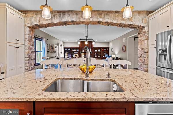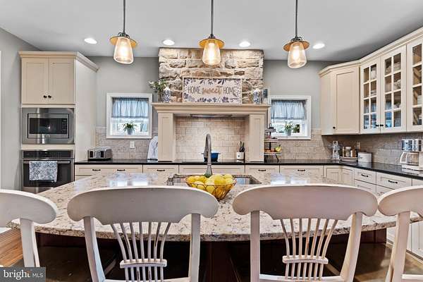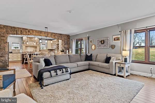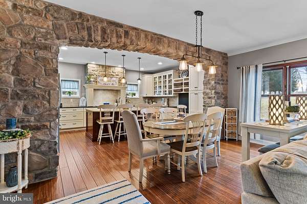 Steeped in history and thoughtfully reimagined, this remarkable farmhouse traces its origins back to 1863, when it served as the original farmhouse on the land. Set on a peaceful 3-acre estate, the home offers a rare and beautiful balance of preserved heritage and modern luxury. The fully remodeled first floor showcases exceptional craftsmanship and intentional design, highlighted by a custom stone archway, a beautifully redesigned kitchen, and custom bamboo flooring throughout. The kitchen opens seamlessly into a warm and inviting family room, creating an ideal space for everyday living and entertaining. In the private office, exposed wood beams and a mantle harvested from an original smokehouse once located on the property serve as a striking reminder of the home's agricultural roots. Adding to the historic character, the flagpole and bell date back to 1867, sourced from a nearby property and thoughtfully incorporated into the grounds. With 6 bedrooms, 4 full bathrooms, and over 5,000 finished square feet, the home offers generous living space designed for comfort, flexibility, and gathering. Upstairs, a beautiful winding staircase leads to spacious bedrooms accompanied by multiple full bathrooms. The primary suite is a true retreat, featuring a large bedroom, sitting area, walk-in closet, and an en-suite bathroom that has been completely remodeled with imported marble tile and an upgraded shower, creating a spa-like experience. Outside, the land tells its own story. A classic wraparound porch overlooks mature landscaping and open pasture views, while a stone paver patio with an outdoor fireplace provides the perfect setting to relax and take in the surrounding countryside. Under current ownership, the property has supported horses, donkeys, and alpacas, with existing farm infrastructure including a stable, paddock, barn, and greenhouse, making it ideal for those seeking space, privacy, and a true connection to the land. Multiple garages and ample parking offer everyday convenience, while the combination of history, craftsmanship, and thoughtful updates makes this property truly one of a kind. This is a rare opportunity to own a historic yet highly functional estate where timeless character meets modern living-ready to be cherished for generations to come.