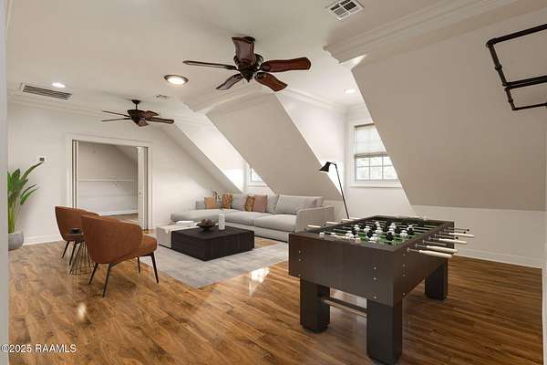 - 9+ ft Ceiling, Attic Access, Built-In Features, Built-Ins, Cathedral Ceiling, Cathedral Ceiling(s), Crown Molding, Double Vanity, Electric Dryer Con, Electric Washer Con, Granite Counters, High Ceilings, Primary Bath, Separate Shower, Varied Ceiling Heights, Walk-In Closet(s)