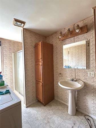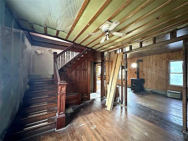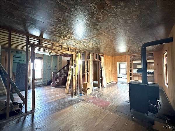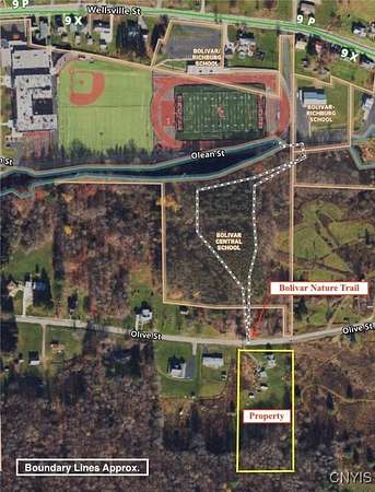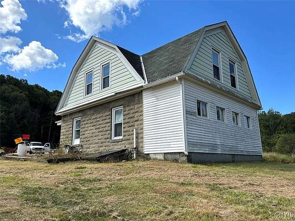 This spacious 3 bedroom, 2 full bath home offers 1,527 sq. ft. of living space on a generous 2.3-acre lot located in Bolivar NY, Allegany County. Located at the edge of the Village of Bolivar, this property provides a quiet setting with convenient access to town, and it has municipal sewer and water. The home features a fully-enclosed front porch that leads into a foyer showcasing a beautiful wood staircase. From there, the main level offers a spacious living room with a pellet stove, an eat-in kitchen, and a full bath. Upstairs, you'll find three bedrooms and another full bath. Throughout the home you'll also find plenty of character including original woodwork and hardwood floors. While the property does require renovation and updating, it presents a fantastic opportunity for someone looking to restore and customize. Additional highlights include a large lot with room for outdoor living and gardening, plus a blacktop driveway with a carport. The property also offers convenient access to the Bolivar Nature Trail located just across the street, along with peaceful country views. There is an oil well(s) on the property. The seller does not own the OGM rights, but surface rights will convey. The camper on the property will convey in as-is condition. This estate property is being sold as-is and is ready for a new owner to bring it back to life. With its size, acreage, and location, it has excellent potential.