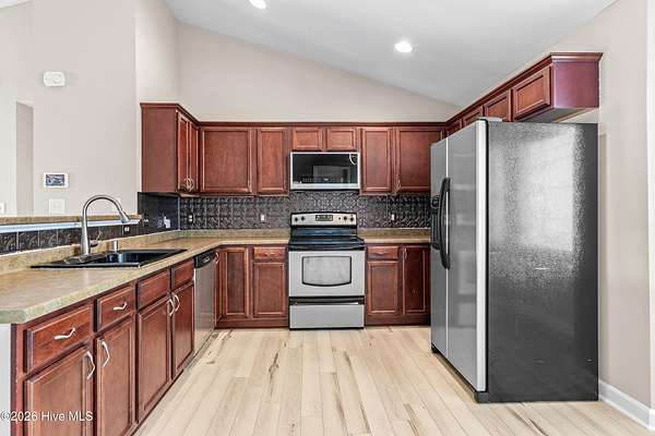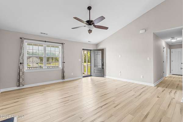 Welcome to 214 Tall Tree Court, situated on just over an acre at the end of a cul-de-sac in the Palo Alto Crossing community. The main living area features vaulted ceilings, abundant natural light, and a fireplace, flowing easily into the kitchen and dining space--ideal for everyday living or entertaining. This home offers added flexibility and convenience, featuring three full bathrooms, a large laundry room, extra storage, and a utility/ dog washing station. Enjoy the fenced backyard with a large deck, perfect for relaxing or entertaining. Conveniently located just a short drive from Jacksonville, with easy access to shopping, dining, and local attractions. Schedule your showing today!