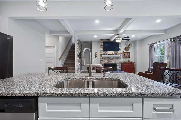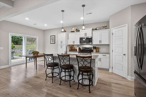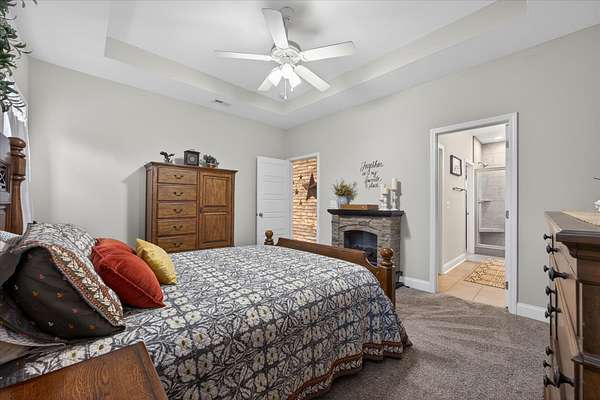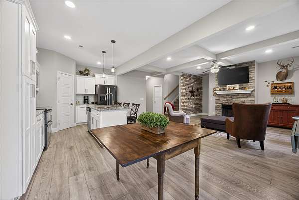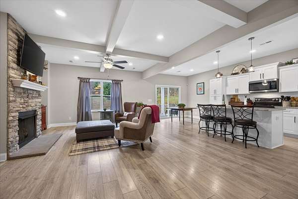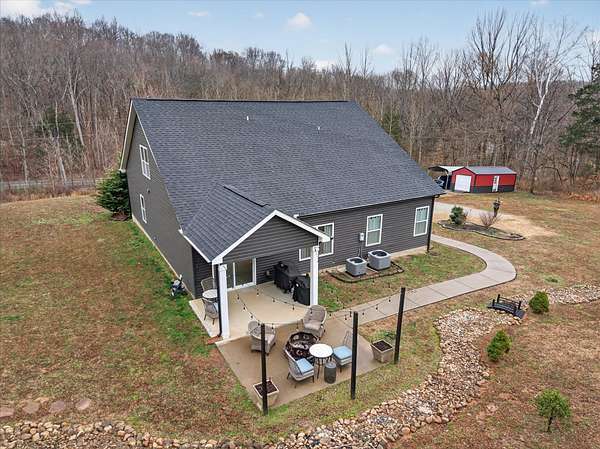 Beautiful open-concept Ranch with Bonus Room situated on 5 scenic acres in Palmyra, TN. This thoughtfully designed home features 9 ft ceilings and a spacious family room with cozy fireplace. The kitchen is the heart of the home, offering granite countertops, a large island, and a pantry—perfect for entertaining and everyday living. The spacious primary suite serves as a private retreat. The en-suite bath features a beautifully tiled shower with built-in seat, creating a spa-like feel, along with a large walk-in closet. This home also includes a security system, and the Vivint alarm system will remain.