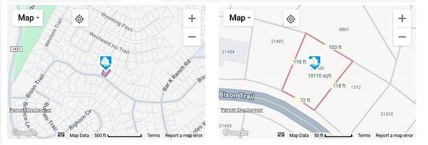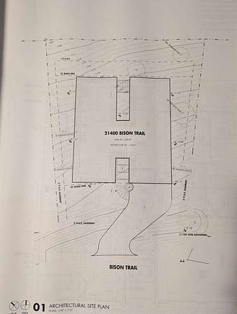 From FM 1431 heading West, Turn RIGHT onto Bison Trl. Stay to the left up the hill. The lot is on the LEFT just past the two gorgeous modern houses.