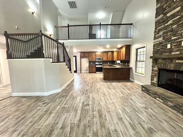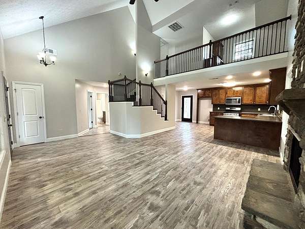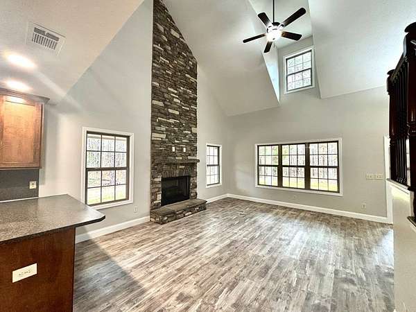 Est $1,901/moHidden down a winding gravel drive, you'll find this 1803 Sq ft 2 story country home with over 1470 sq ft of wrap around porches. Huge vaulted ceilings in an open concept. Master is upstairs with your own private sitting area and master balcony overlooking the property. New appliances, instant gas hot water, new carpet and fresh paint inside and out!!! No HOA restrictions so bring your chickens! OWNER FINANCING is available with significant down payment. Don't sleep on this one...call today for a private showing