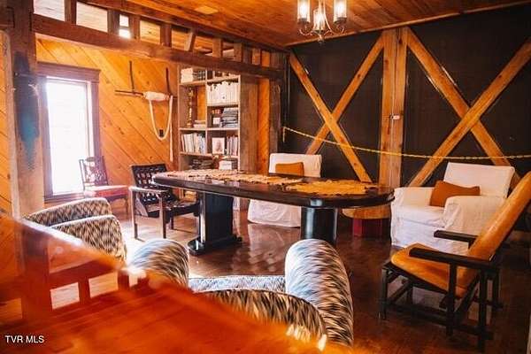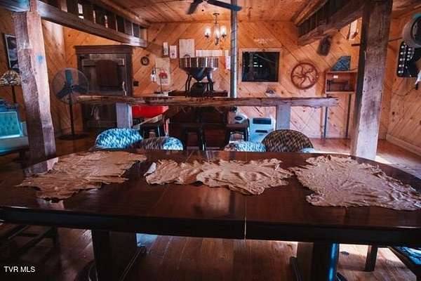 If you're searching for a truly remarkable historic property, consider one that has stood for centuries and served its community with purpose and pride: the iconic Parks Mill. Located in Abingdon, Virginia-just five miles north of the Tennessee border-this mill takes its name from the family who operated it for generations. Established in the 1780s by Irish millwrights who came to the New World to build mills on land granted under charter by England's King Charles, this remarkable structure has witnessed an unbroken thread of American history. It survived the Civil War and remains standing today as a rare testament to early American industry. Now situated on its remaining 8 acres, Parks Mill presents an extraordinary opportunity to own and steward a preserved piece of America's past. This waterfront property-now thoughtfully reimagined as an events venue for weddings, celebrations, and retreats-features four distinct buildings along with beautifully designed outdoor spaces, making it a genuinely one-of-a-kind offering. Imagine owning a private waterfront haven complete with water rights, a natural waterfall, and endless potential. Whether you envision a family compound, a thriving commercial venture, or a peaceful wellness retreat, this property provides the space, setting, and character to bring that vision to life. On 2.87 acres of the nearly 8-acre estate, a collection of carefully planned structures enhances both beauty and function. The bathhouse includes two accessible restrooms, a utility room, and laundry facilities. Nearby, a spacious lodge offers an open, light-filled, wood-paneled event hall wrapped in generous covered porches and anchored by a substantial built-in bar. The lodge overlooks a cozy fire-pit terrace set just above the creek bank, creating an inviting atmosphere for gatherings throughout the year. Behind the lodge stretches an expansive tree-bordered lawn offering exceptional privacy, complete with a cantilevered deck suspended over the creek-perfect for relaxing, entertaining, or enjoying the surrounding wildlife. Adjacent to this lawn is a charming one-bedroom, one-bath cottage with a full kitchen, currently serving as a bridal lounge. Built in 2003, these three structures offer excellent flexibility and can easily be adapted for a variety of lifestyle or business needs. At the heart of the property is its most captivating feature: the powerful waterfall whose steady flow turns the historic waterwheel of the original grist mill. This four-story mill, preserved in its authentic condition and still containing its original milling equipment, stands as a breathtaking and irreplaceable centerpiece-fully included in the acquisition. The remaining acreage provides exceptional versatility. It can be transformed into a campground with space for up to ten tiny homes on wheels, expanded parking, or even agricultural use. Whatever your vision, the land offers constant views of the creek and the soothing sound of cascading water-an experience that makes this property truly incomparable and utterly unique.