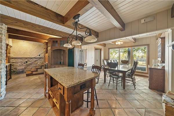 This is a property that comes along once in a lifetime, ownership of the "Elias Garrett house." A beautiful homestead on 30.47 acres which includes a beautiful home, barn, horse barn, two car garage with guest quarters on a gated estate. Located hidden in the hills overlooking Shawnee Mission Park minutes away from all conveniences and schools. Well built and maintained stone home that includes all your modern updates and improvements. Updated chef's kitchen with high end cabinets, wine cooler, granite topped island, granite counter tops and Jenn Air Appliances. Newer roof, sunroom and inground pool. All additions that have been added have used the same stone as original construction. Master suite updated with sound system, walk-in closet, bathroom with double vanity, shower, bathtub and heated floor tiles. Two HVAC systems, fireplace, wood burning stove will keep you cool in the summer and warm in the winter. A Generac generator will keep everything running smoothly if that rare outage happens. Large laundry room that even includes a shower/bath area for Fido. The two-car garage has a very comfortable guest quarters which includes a full bathroom with shower. Wildlife abounds, with frequent sightings of whitetail deer and turkeys. This property is zoned as AG (Agricultural) so bring those animals and gardening ideas. Horse barn includes a separate fenced area to allow horses to move freely. Water hydrants are located in multiply locations to use to wash off that equipment or water the animals as well as having a 23 zone sprinkler system installed surrounding the property. Enjoy that first cup of coffee sitting in the Sunroom as the deer wonder the valley in front of you or getting a drink from the aerated pond. For that outdoorsman two high end gun safes will remain with the property.This property includes a residential alarm and surveillance camera system with 24 hour monitoring.