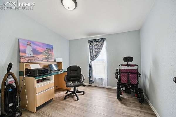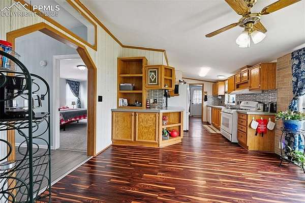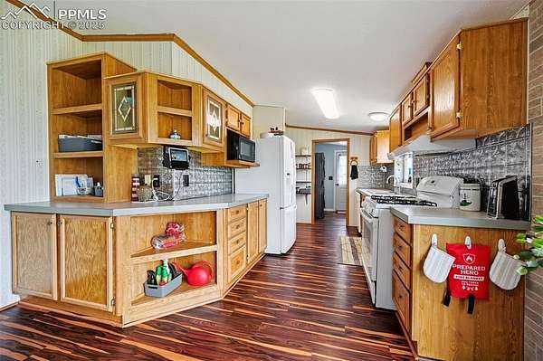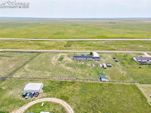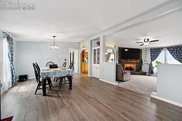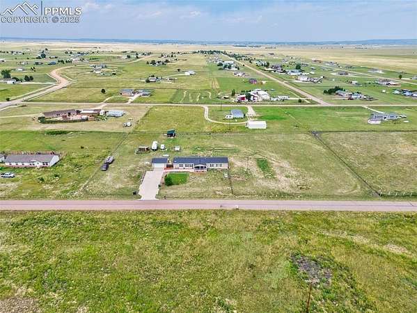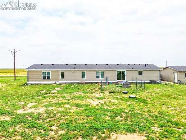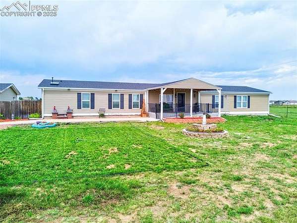 Horse-Zoned with Mountain Views! This home 2.66 acres with no HOA and zoned for horses, this spacious 5-bedroom, 2-bath manufactured home offers 2,322 sq. ft. of comfortable living space plus an office, oversized pantry, and a permitted engineered addition. (Blueprints Available) Recent upgrades include new LVP flooring, fresh carpet and paint, and an updated primary bathroom. Enjoy abundant natural light from Pella windows, an Andersen sliding glass door, and two skylights. The home is thoughtfully designed with ADA-friendly features such as a compliant bathroom, concrete ramp, and covered front porch for easy accessibility. Modern conveniences include central A/C, ceiling fans, a tankless water heater, generator hook-up with cut-off switch, and a new dishwasher. The home rests on a HUD-compliant foundation, with the septic system upgraded in 2020 with a new leach field and diverter. An exterior storm shelter provides added peace of mind. Outdoors, you'll find a detached two-car garage, 26x12 loafing shed, storage shed, animal pen, and a 30-amp RV hookup. The acreage is fenced on three sides and showcases sweeping views of Pikes Peak. Home and Land recently purged. Conveniently located near Ellicott schools, local dining, gas station, and general store-and just 15 minutes from Colorado Springs-this property perfectly blends rural tranquility, modern updates, and everyday convenience.