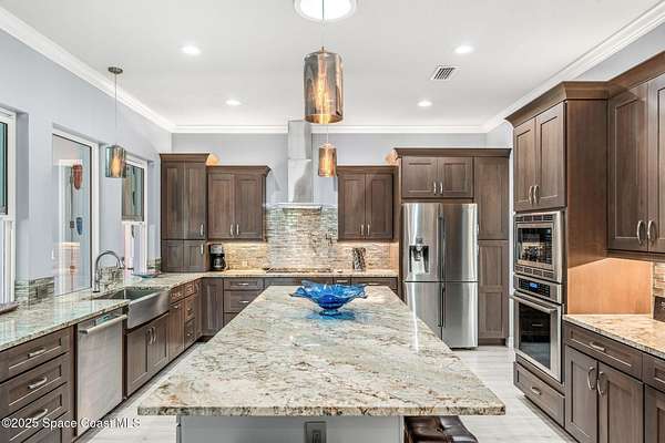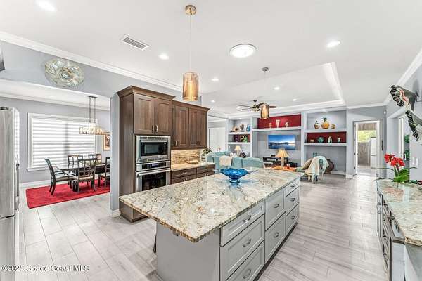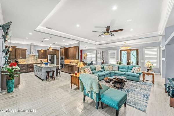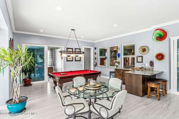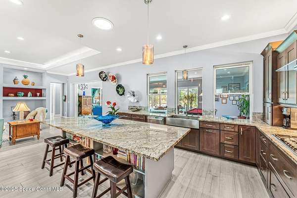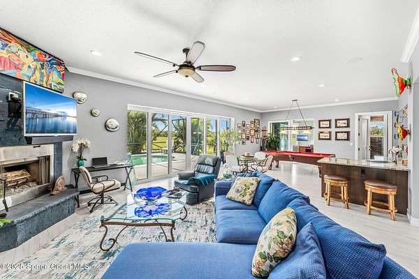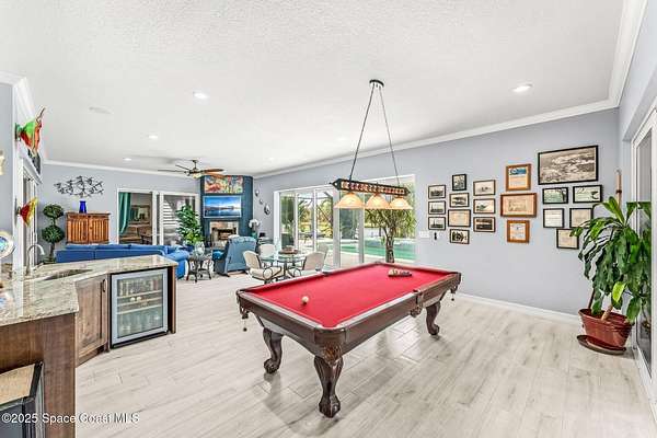 More than a house, this solar-powered estate is a retreat - a place where everyday living feels like a vacation. Set on 4.15 acres with a private pond and fountain, the property invites quiet mornings on the lanai with coffee and birdsong, afternoon swims in the screened saltwater pool warmed by electric heat, and evenings gathered around the Florida room fireplace or beneath a sky of stars. The fully opening Florida room with wet bar and pool table creates a seamless indoor-outdoor entertaining flow: poolside cookouts, relaxed cocktail hours, and holiday gatherings feel effortless here. For the home chef and serious entertainers, the island kitchen is built to perform - granite counters, pot filler, abundant storage, and thoughtful lighting make meal prep efficient and social. The formal dining area and adjacent great room with crown molding and built-ins provide elegant spaces for dinner parties or quiet family nights. Practical luxuries like the oversized laundry/pantry, tankless water heater, and whole-house 26kW Generac generator mean hosting and daily routines are comfortable, efficient, and worry-free. Privacy and resilience are hallmarks of the lifestyle here. With solar power, a 500-gallon propane tank, impact windows, metal roof, and backup generator, the estate supports long-term comfort and independence. The split bedroom plan ensures separation for guests or family members, while the primary suite two walk-in closets, jetted tub, double vanities, and a separate shower reads like a private spa retreat. Beyond comfort, the grounds offer a rare combination of recreation and serenity: the pond and fountain set a peaceful stage for reflection, birdwatching, or casual fishing, while the open acreage provides room for gardens, hobby demonstrations, or quiet strolls. Whether you crave active entertaining, serene privacy, or a self-sufficient weekend haven, this property delivers a refined, relaxed Florida lifestyle.