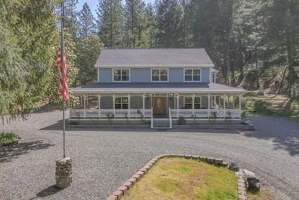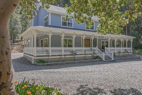Custom 2-story Victorian Home and large garage/shop on 6 acres. The 2600 sq ft home and 30' x 50' two-story custom garage/shop is situated in a nicely maintained subdivision in Junction City. The HOA includes Trinity River access and road maintenance is provided by the county. The features include a wrap-around covered porch, crown molding, custom woodwork, large walk-in closets, and two master suites. The bathrooms have custom Corian counters and showers. The main floor consists of a gourmet kitchen with top-end appliances, a large dining room, and a large living room with a concrete hearth & mantle for the wood-burning stove. Outside, the garden and fruit tree area is fully fenced and also functions as a large dog-run area. Extensive fire fuel reduction throughout the lot. The water system includes two wells with ample in-ground storage and a backup generator.