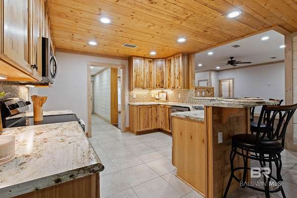 Tucked into 2.36 peaceful acres with no HOA, this custom built 2017 home feels like the kind of place you settle into and stay. It offers the space people look for with 2386 square feet three bedrooms two and a half baths and a large upstairs bonus room that could easily become a fourth bedroom guest suite or hobby room. From the moment you step inside you can feel how thoughtfully it was built. Spruce shiplap walls hickory floors and pine ceilings set the tone warm simple and timeless.The kitchen is a highlight for anyone who loves to cook or entertains often. Hickory cabinets stretch all the way to the ceiling soft close drawers and pull outs keep everything organized and the tile backsplash and oversized pantry make the room feel both beautiful and practical. It is one of those kitchens that just feels right.The primary suite is designed to give you options and comfort with a spacious walk in closet and a private attached room perfect for a nursery office or sitting area. Secondary bedrooms are connected by a true Jack and Jill bath with double vanities. Upstairs the bonus room adds another layer of space and the floored attic gives you extra storage many homes lack.Life outside is just as special. The screened in back porch lets you enjoy spring rain coffee in the morning or slow evenings under the trees. The fenced pet area sits beneath mature magnolia and oak trees and a 20 by 40 metal building offers room for tools equipment or a future workshop.This home brings together the peace of country living with the convenience of town. You are only minutes from shopping dining and schools and still a short drive from the white sand beaches of South Alabama. Move in ready well-loved and full of character homes like this do not come around often.The only thing left is choosing where your rocking chairs go. Buyer to verify all information during due diligence.