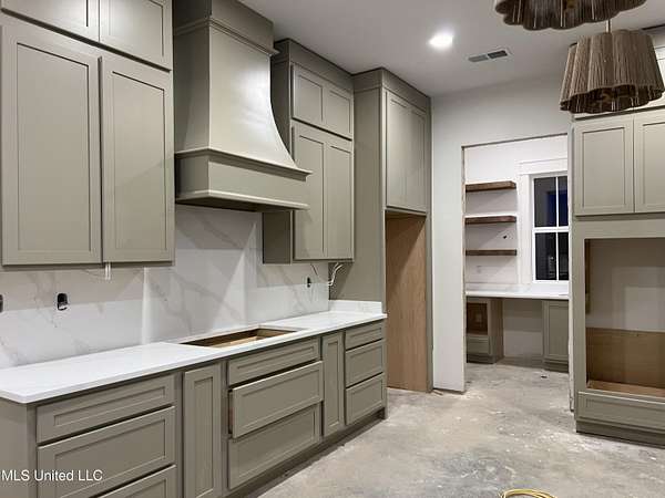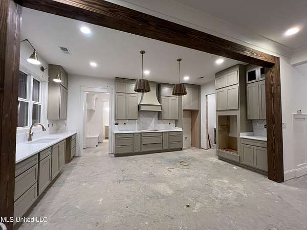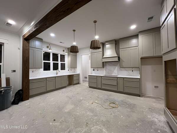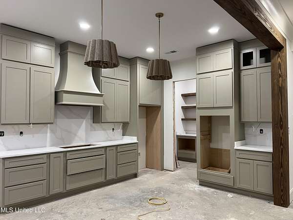 Welcome to your dream home! This stunning, custom-built modern farmhouse is perfectly situated on 2.1 acres in the highly desirable Estates of Grays Valley subdivision, offering exceptional privacy, space, and timeless style. Featuring 5 bedrooms and 3.5 baths, this thoughtfully designed residence is currently in the final stages of construction and scheduled for completion in February. The open, split-bedroom floor plan is expertly crafted to blend comfort, functionality, and luxury living. At the heart of the home, the chef-inspired kitchen is designed to impress with ceiling-height cabinetry, a large center island, gas cooktop, double ovens, quartz countertops and backsplash, and an elegant scullery with custom shelving and a Costco door-perfectly designed for modern convenience and entertaining. The main living areas flow seamlessly to the oversized back patio, where peaceful wooded views create an ideal backdrop for outdoor dining, gatherings, or quiet evenings at home. The main-level primary suite is a true private retreat, featuring a soaring cathedral ceiling with striking exposed beams, dual vanities, a freestanding soaking tub, a spacious walk-in shower, and a designer walk-in closet with custom wood shelving and direct access to the laundry room. On the opposite side of the main level, two additional bedrooms-each with custom walk-in closets-share a beautifully appointed hall bath, offering both privacy and convenience for family or guests. Eight-foot doors throughout the main level enhance the home's open, spacious, and refined design. Upstairs, you'll find two generously sized bedrooms, a full bath, and a versatile loft-style space ideal for a home office, media room, or flex area to fit your lifestyle. Additional highlights include a half bath, an impressive covered front porch, a three-car garage, and an unfinished bonus room-providing endless possibilities for storage, hobbies, or future expansion. This exceptional home showcases refined craftsmanship, thoughtful design, and the perfect blend of modern luxury and farmhouse charm. Located within the Hernando School District and just minutes from I-55, this property offers the ideal balance of peaceful living and everyday convenience. Schedule your private tour today-professional photos coming soon!