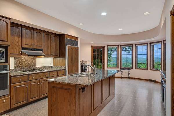 Escape to your own private sanctuary in the heart of the Driftless Area of Monroe County, WI. This one-of-a-kind custom-built home has 6 bedrooms, 3.5 baths with 5,150 sf, towering 2 stories. As you enter the property down the winding blacktop driveway through the gated entrance, the privacy and tranquility are unmatched. The seclusion gives way to panoramic, long-range views of the valley below. Wildlife can be observed daily, eating from the multiple fruit trees throughout the yard. This unmatched setting is towering above Mead Ave and is offered on 12 acres, perfectly situated to take advantage of the surrounding landscape. (This property will need to be surveyed; additional land can be purchased.) This property is built for entertaining with a private game room on the second level and ample space for guests. Oversized windows throughout the home flood the interior with natural light and showcase the panoramic views this property offers. Whether you are sitting around the indoor fireplace or outdoors enjoying the natural serenity, this property is the perfect spot for entertainment and relaxation year-round! Whether youre looking for a peaceful family home or a property that blends comfort with natural beauty, this rare offering delivers. Located only minutes from Wilton, WI, homes like this dont come around often. Property Address: 21422 Mead Ave, Wilton, WI 54670, USA Property Features: -Stunning Views -Abundant wildlife -Close to town -Private setting -One of a kind