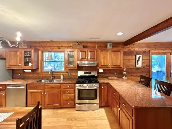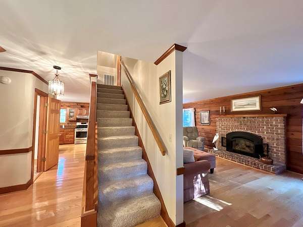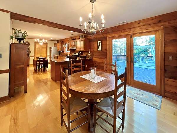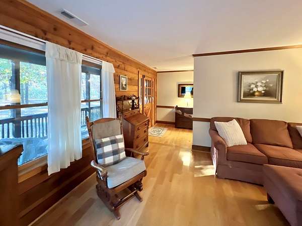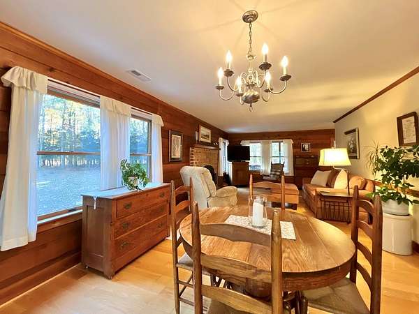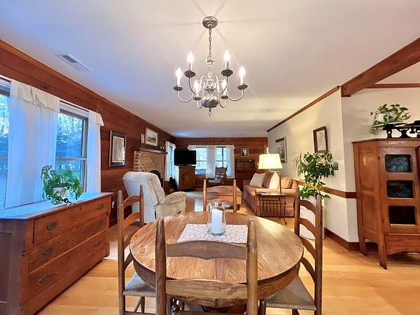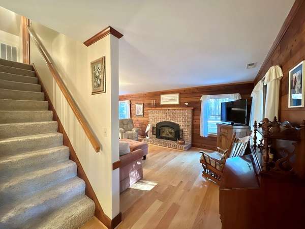 Nestled on 3.34 acres, this Western Red Cedar log home blends rustic charm with modern comfort. The first floor, including the attached garage, is built from solid cedar logs, while the second floor features cedar siding and traditional framing. With 3 bedrooms, 2.5 baths, and 1,824 sq. ft., the home showcases warm wood tones, a stunning fireplace, and an inviting layout. The first-floor primary suite offers an ensuite bath, while two additional bedrooms and a full bath are upstairs. Enjoy mornings on the covered front porch or relax on the large back deck overlooking your private yard. A circle driveway adds curb appeal and convenience. Located just minutes from Parksley, Onley, and Onancock, this property offers the perfect mix of privacy, quality, and Eastern Shore living.