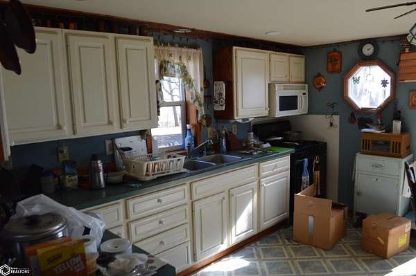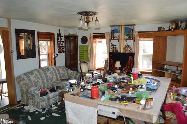 Est $465/moAcreage opportunity near Lake Mills, Iowa. This 2 bedroom farmhouse sits on 3.7 acres along a paved road. Solid house that needs rehab/updating. Main floor laundry room, large bathroom and south facing patio. Old barn building and lots of trees. This is a great spot to rehab the current house or build a new home. Property is sold strictly 'AS IS'. Take a look for yourself.
