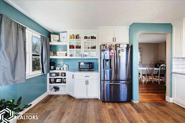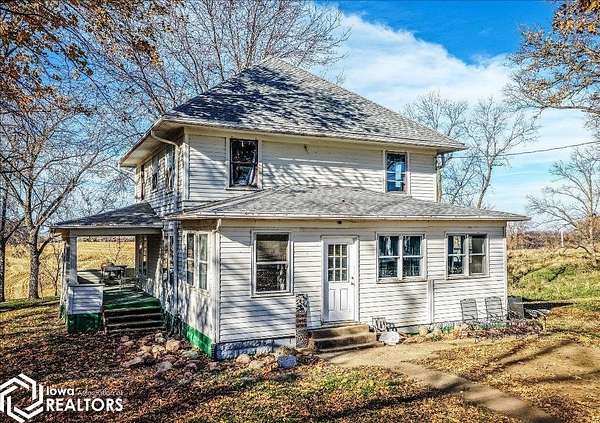 Two story farmhouse on 7.12 acres. This 4 bedroom, 1 1/2 bath has newer roof, septic, furnace/CA, kitchen and full bath. Main floor has updated kitchen, Dining & living room combo and new full bath. Upstairs you'll find 4 bedrooms and a 1/2 bath. Detached 2 car garage, 1 car detached with shop and a 28x30 pole barn for livestock. Front wrap around open porch.
