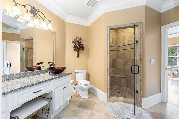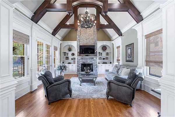 Welcome to a place where every detail tells a story - a home that was built to be lived in beautifully. Originally crafted by a custom builder for his own personal residence, this gorgeous 2.3-acre estate blends timeless design with thoughtful functionality, creating a lifestyle that's as elegant as it is effortless. From the moment you arrive, you'll sense the quality. The 4-sides brick exterior creates timeless elegance, while inside, rich millwork, detailed ceilings in every room, and site-finished hardwood floors speak to the home's custom pedigree. Each bedroom features its own ensuite bath, adorned with travertine finishes, ensuring every family member or guest enjoys a retreat of their own. The main level primary suite offers a serene haven, complete with a morning bar featuring refrigerated drawers, a spa-inspired ensuite with leathered granite accents, stunning vanities, and an impressive custom closet. The heart of the home - a chef's kitchen - is built for both entertaining and everyday living, boasting an 8-burner cooktop, butler's pantry, and walk-in pantry, opening to a grand keeping room that invites gathering and conversation. In addition to the spacious bedroom suites upstairs, you'll find a flex room ideal for a shared living space, study room, media room, or home gym. Outside you'll find everything you need for play and relaxation: a gunite saltwater pool with spa, firepit, sprawling level yard ideal for kids and pets, expansive covered porch, space for RV parking, and a detached 2-car garage with separate workshop, complete with AC and stubbed for a bath. Additional highlights include a spacious laundry room on the main level with additional second laundry room upstairs, the full daylight terrace level offering a wide range of opportunities for future expansion, and the 3-car attached garage. This is more than a home - it's a lifestyle of ease, privacy, and possibility, where every day feels a little like vacation. *$50,000 buyer incentive! Any way the buyer wants it* Incentive can be used for a price reduction, closing costs, vendor credit, rate buydown, or any other way the buyer wants it that is approved by buyer's lender.
