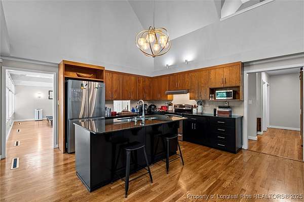 - Attic, Cathedral Ceilings, Ceiling Fans, Eat In Kitchen, Entrance Foyer, Granite Counters, Jetted Tub, Kitchen Dining Combo, Kitchen Island, Primary Downstairs, Separate Shower, Vaulted Ceilings, Walk In Closets, Wet Bar, Window Treatments