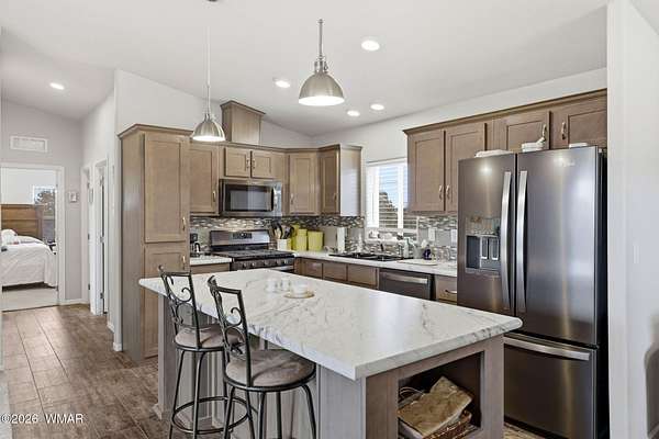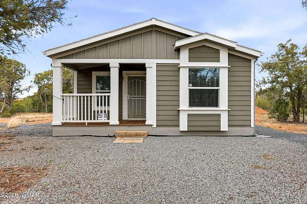 This spacious 1.81-acre nicely treed lot in Clay Springs offers a comfortable 2-bedroom, 2-bathroom manufactured home (24x50), fully furnished and ready for move-in. The kitchen is outfitted with stainless steel appliances and all essentials--just bring your toothbrush, clothes, and groceries to settle in, whether you're planning a vacation stay or a permanent home. Located only 0.8 miles from the Sitgreaves National Forest, close to the Maverick Trail, the property gives you easy horseback or UTV recreational access. You'll also find a 20-foot shipping container converted into a workshop, complete with shelving, a dual fuel generator, and a BBQ grill. Other features include natural landscaping, barbed wire fencing, seamless gutters with French drains, and a gated gravel driveway. Residents enjoy access to the Clay Springs Heritage Foundation Community Center with organized activities, a thrift store, and a children's playground.