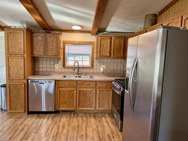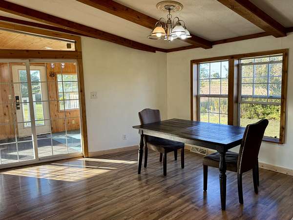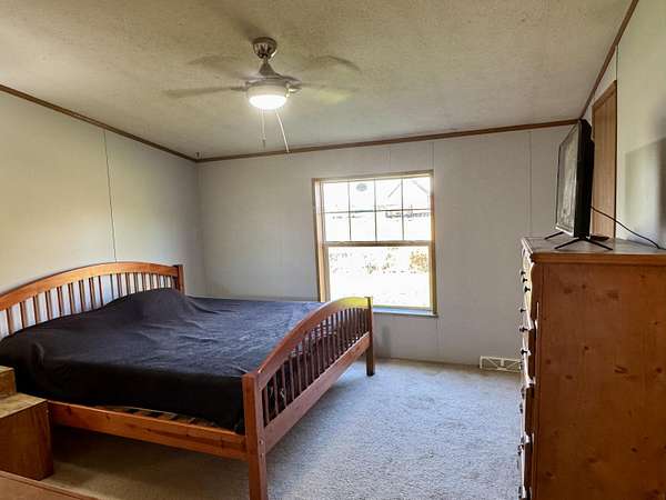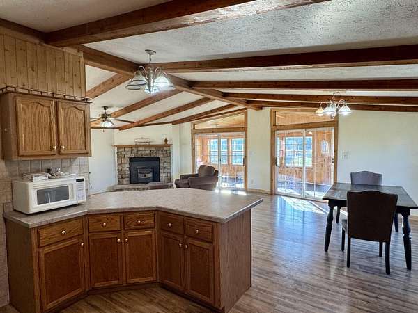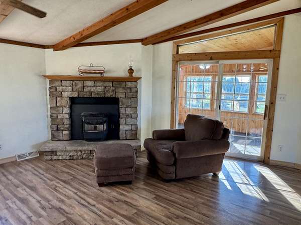 Welcome home to this move-in ready doublewide featuring 3 bedrooms and 2 full baths. The open-concept layout offers a spacious kitchen with a center island that flows into the dining area and living room, complete with a cozy pellet insert. The primary bedroom includes an attached bath with a double sink vanity, soaking tub, and separate shower - great for unwinding at the end of a long day. Enjoy the enclosed three-season porch, great for relaxing in the sunshine or providing extra space for coats, shoes, and storage. Step outside to a sprawling, private yard with plenty of room for entertaining, recreation, and an abundance of gardening space to grow all your favorite summer veggies. Multiple sheds offer ample storage for tools and outdoor gear. This property has so much to offer - with space, comfort, and endless possibilities!