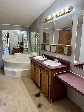 - Ceiling Fan(s), Double Vanity, Laminate Counters, Soaking Tub
