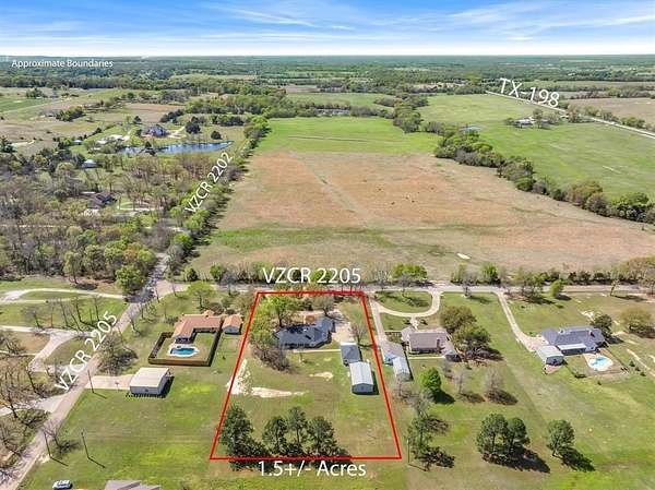 Coming front Canton, turn left onto HWY 198-S. Drive down and turn left onto VZ County Rd 2205. Property down on left. Sign out front.