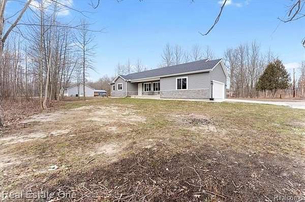 Move-in ready newer 3 Bed 2.5 bathroom 2024 construction ranch situated on a spacious, private lot surrounded by mature trees. This well maintained home offers an open concept layout with vaulted ceilings, neutral tones, and abundant natural light throughout. The kitchen features granite countertops, stainless steel appliances, ample cabinetry, and a center island that flows seamlessly into the dining area and living space ideal for everyday living and entertaining. Large windows provide peaceful views of the backyard. The primary suite includes a walk-in closet and private bath with dual sinks and modern finishes. Additional bedrooms are generously sized with fresh carpeting and ample closet space. Main floor laundry adds convenience. Exterior features include an attached 2-car garage, extended driveway, storage shed, and a wide open yard with plenty of usable space. No subdivision congestion enjoy privacy and flexibility rarely found with newer homes. Peace of mind living here for many years to come.