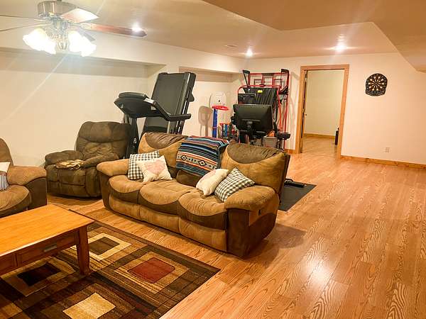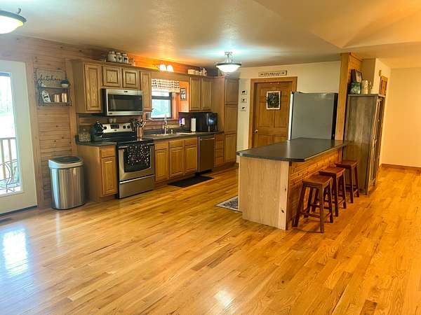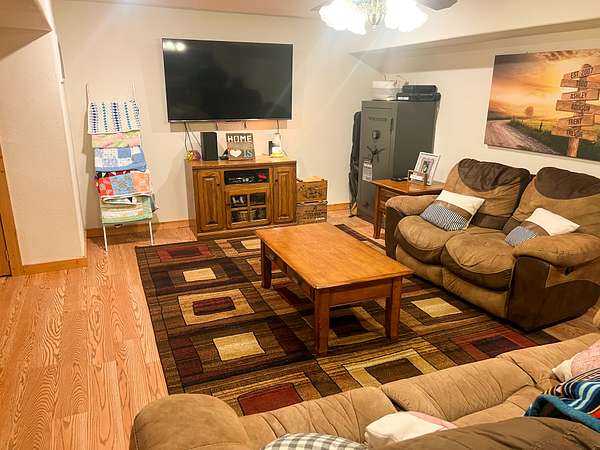 This four beds and two and half bath 2010 build has a rustic elegance and a great location. The open floor plan in the kitchen and living room area all covered with hard wood floors. The kitchen has all stainless steel appliances and oak cabinets. The master bed room is off of the living room with a master bathroom with a separate tub and shower along with walk in closets. The living room opens up to a fully covered from porch. The walkout basement is full of natural light and is fully finished with three bedrooms and one full bath, along with and additional living room and a storage room. The basement walks out to a covered patio with an extended concrete apron perfect for outside activities. In addition to all of this Oak Land Estate also has a two car garage and a outside shed for storage such as a lawn mower. This is a meticulously maintained property inside and out. Call today for you private showing!