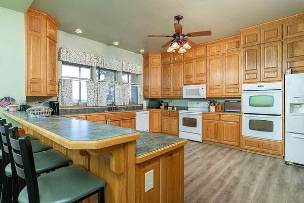 - Attic Storage, Built-In Ironing Board, Built-Ins, Ceiling Fans, Drapes, Eat-in-Kitchen, Ice Maker Connection, Pantry