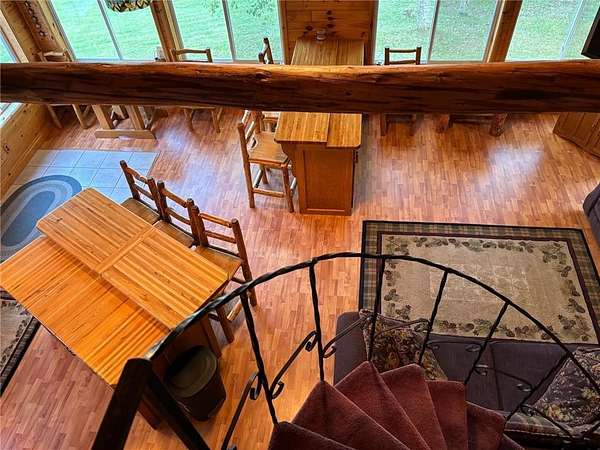 Est $1,961/moThis is a must see. The cabin has a log look inside and a maintenance free outside. Features a propane fire place, an electric toilet, new refrigerator, hand made pine tables and chairs, and a spiral stair case to access the loft. It comes fully furnished as is. 6 acres adjacent to 100's of acres of prime public hunting land. A beautiful drive in to secluded lot. A breath taking view of a quiet, clear, and excellent fishing lake. Take it in from the cozy cabin, gazebo, one of the landings on the gradual slope to the lake or on the water. The choice is yours.