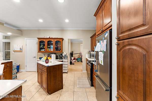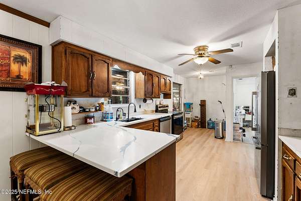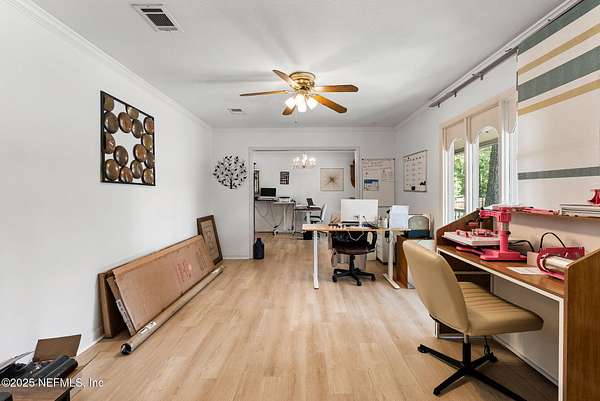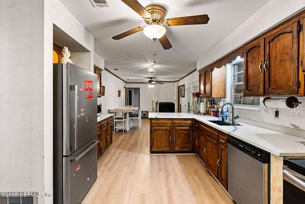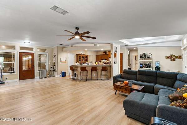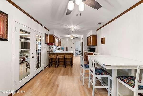 Welcome to your spacious retreat, perfect for extended family living on 1.69 acres. This property features two separate yet connected homes with over 4,000 sq. ft. of living space, offering 7 bedrooms (including 2 en suites), 5 bathrooms, and 2 kitchens. 100K in Recent updates include updated bathrooms, kitchens, lighting, fencing and more-making it move-in ready and ideal for multi-generational living. A large patio encloses both homes making it a great gathering area for holidays, game days, and celebrations. The property also includes a circular driveway, covered 2-car carport, ample parking, and additional space for your RV or boat. For added peace of mind, a Generac generator. With no HOA or CDD restrictions, you'll enjoy the freedom to create your lifestyle while being conveniently close to Jacksonville International Airport, River City Marketplace, I-95, and the Sports Complex.